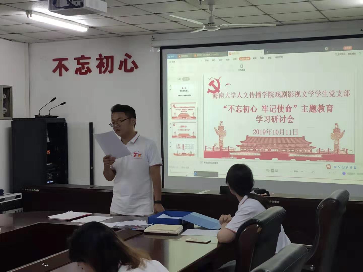 社科楼B719组织召开了“不忘初心、牢记使命”主题教育专题学习研讨会,支部全体党员参加会议。会议由支部书记王嘉南主持。