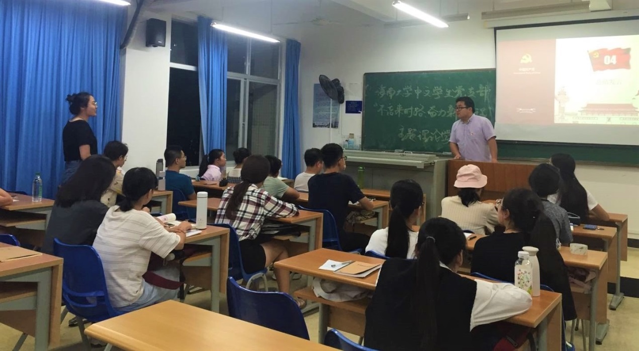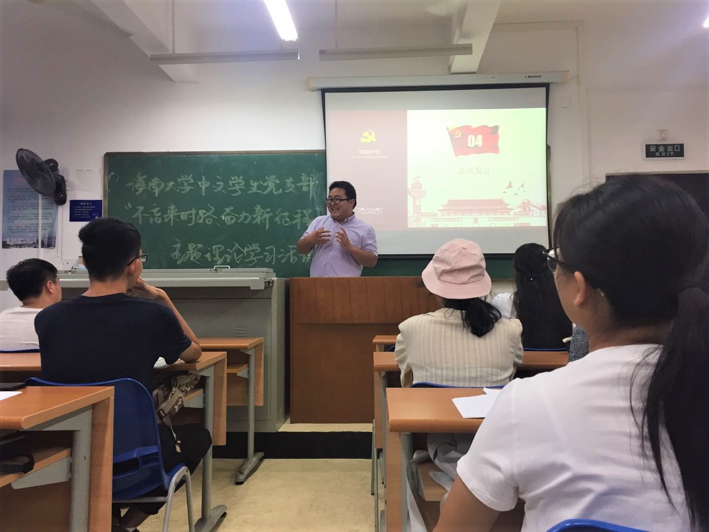 为开展好“不忘初心、牢记使命”主题教育的学习教育,中文学生党支部于2019年10月18日晚在五教220组织召开“不忘来时路,奋力新征程”主题理论学习会。学习会由党支部副书记郭瑞鹏同志主持,全体2017、20118级入党积极分子参与学习。