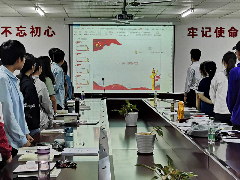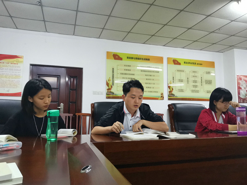 2019年11月26日晚,中文学生党支部于学院七楼组织召开预备党员接收大会暨第五期读书交流会,会议由支部组织委员陈倩倩主持,支部全体党员和拟接收为预备党员的发展对象参加会议。