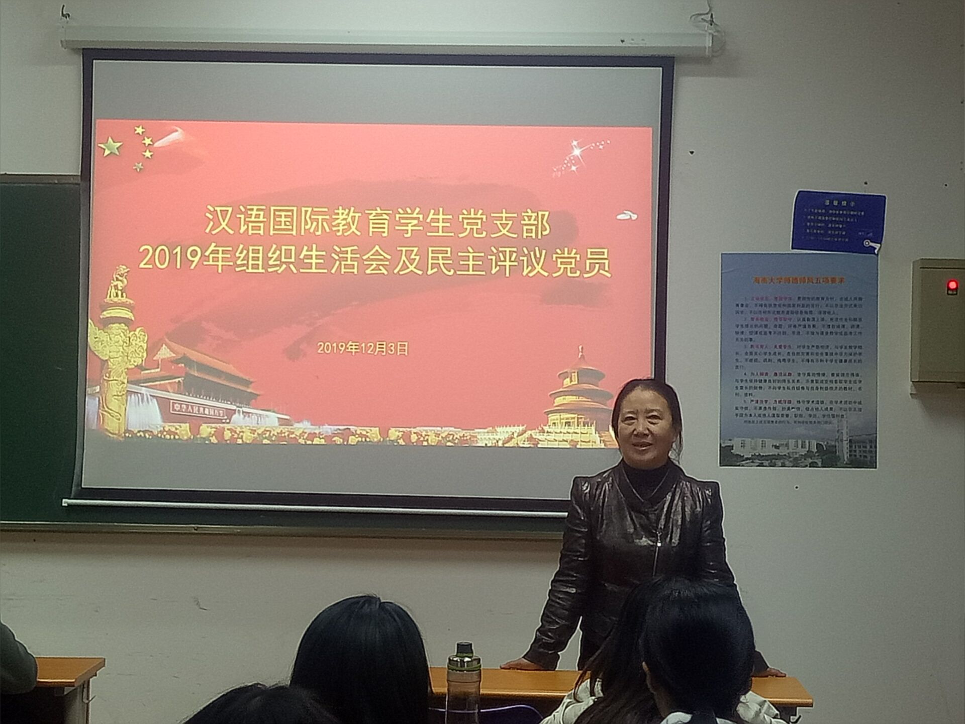 为深入学习贯彻习近平新时代中国特色社会主义思想,紧扣“不忘初心、牢记使命”主题,坚持实事求是,用好批评和自我批评锐利武器,培养优秀党员,加强支部建设。12月3日下午,汉语国际教育学生党支部在2教202,组织开展2019年组织生活会及民主评议党员会议。学院党委副书记孙晓媛出席,支部书记李润东主持会议,支部全体党员参加会议。