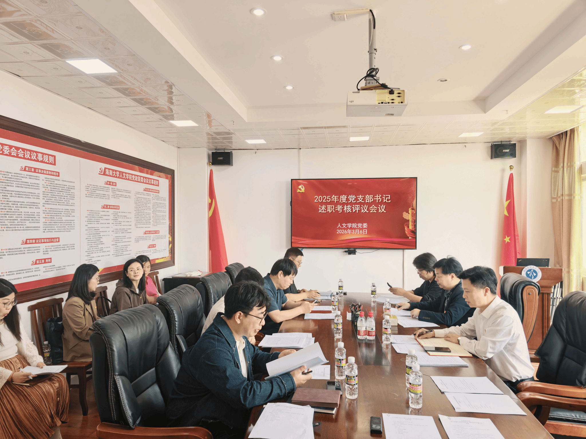 党委于2026年3月6日下午在社科楼B615会议室召开2025年度党组织书记抓基层党建述职评议考核工作会议。学院党委班子成员、各党支部书记及支委、党员代表、群众代表参加会议。会议由学院党委书记杨元广主持并作点评讲话。