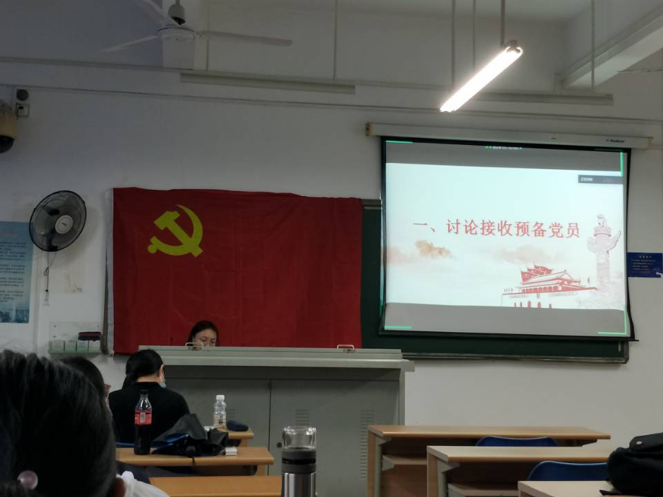 会议第一项,讨论接收预备党员。按照相关考察程序,发展对象汇报对党的认识、入党动机、本人履历、家庭和主要社会关系情况以及需向党组织说明的问题。其次入党介绍人如实介绍发展对象的情况,并对其能否入党表明意见。随后支委会向支部大会介绍培养、政审和听取意见等情况,并提出初步意见。与会党员对发展对象能否入党进行充分讨论后,采用无记名投票的方式进行表决并作出决议。经投票表决,支部大会同意接收付鑫、施雅馨、王洁、张倩楠、陈兰慧、吴炫、胡建强、方静妍8名同志为支部预备党员。