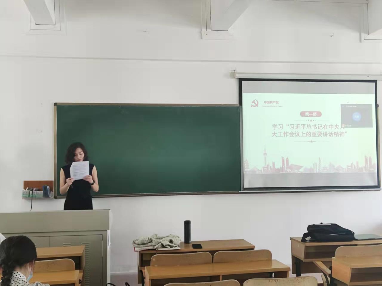 首先,王赛珈同志回顾了习近平总书记在中央人大工作会议上讲话的重点内容,她结合历史与现实指出,人民代表大会制度是坚持党的领导和马克思主义国家学说的产物,是符合中国国情的民主制度,深刻分析了人民代表大会制度的科学性与重要性。接下来,王赛珈同志从“党自我革命的成就”、“继续推进从严治党”两个方面分析了“十九届中央纪委六次全会重要讲话精神”,希望同志们能够增强“四个意识”、坚定“四个自信”、做到“两个维护”,加强自身作风建设。最后,王赛珈同志重点带领大家学习了“两会重要精神”,她从“形势”、“行动”、“信心”三个角度解读了2021年政府工作报告,使大家对我国的发展情况和未来规划有了更深入的理解;她通过习近平总书记两会期间“下团组”的讲话内容,解读了习近平总书记有关“五个必由之路”、“我国发展的战略性有利条件”、“粮食安全”、“民生问题”等方面的思想,使习近平总书记的真知灼见转化为大家的思想养料。