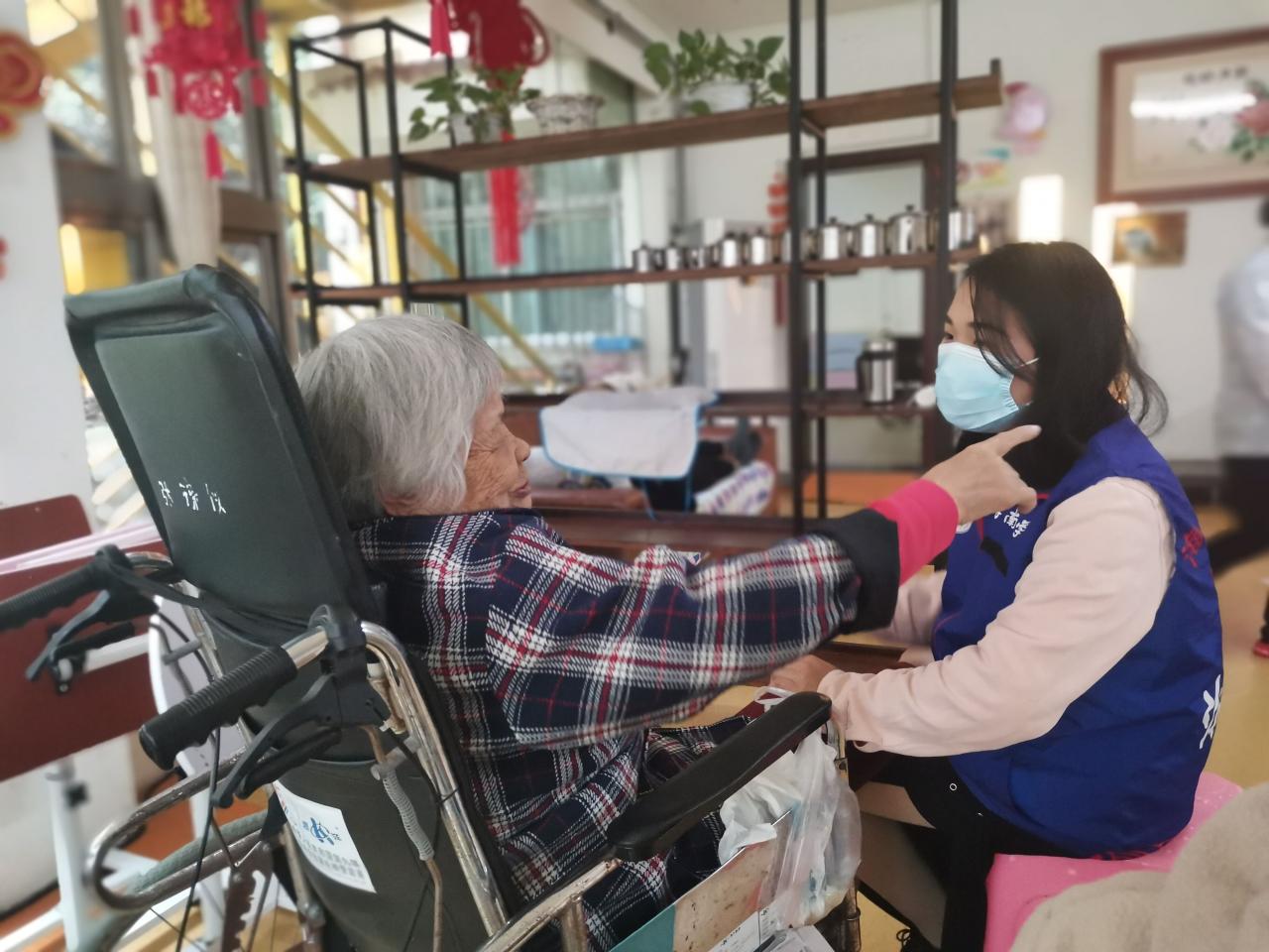 经过工作人员的培训后,志愿者分为四组,进入不同楼层为老人提供服务,志愿者为老人按摩、喂他们吃饭、协助护工换床单收拾床铺、推着轮椅陪老人晒太阳、散步……志愿者耐心陪伴,认真服务,给老人送去了真挚的关怀,带去了冬日的温暖。活动结束前,一位老人在和志愿者告别时说:“你们能来奶奶非常高兴,真的谢谢你们。”