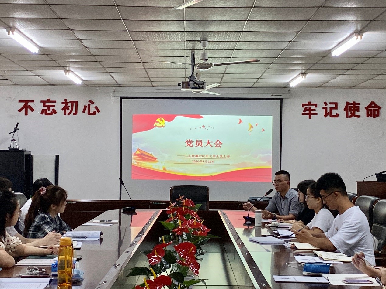为深入学习贯彻落实习近平新时代中国特色社会主义思想和党的十九大精神,推进组织生活规范化常态化,中文学生党支部于2020年9月25日在社科楼B719召开党员大会。会议围绕学习文件精神展开,由支部负责人李润东同志主持,支部全体党员同志参与。