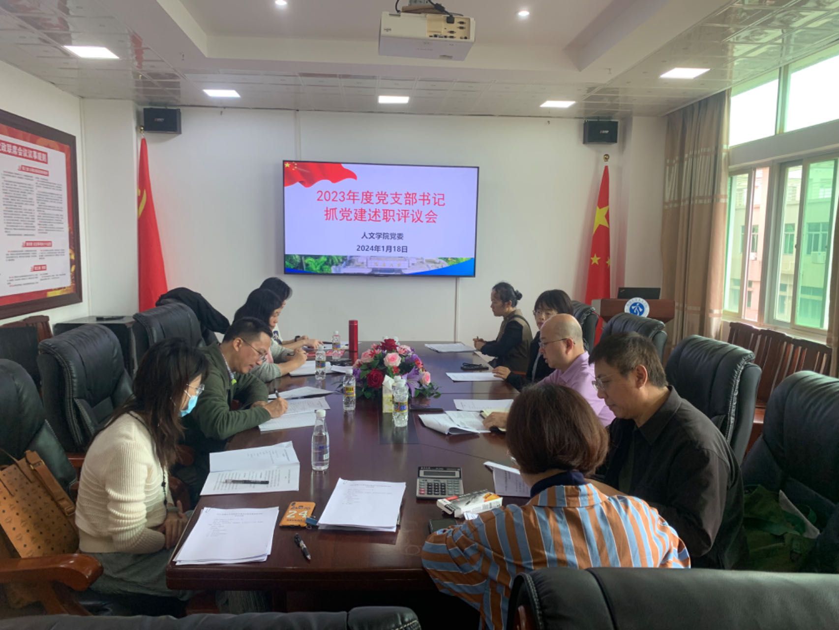 党委于2024年1月18日上午在社科楼B615会议室召开2023年度党支部书记述职考核评议会议。学院党员院领导、党委委员、各党支部书记及支委、党员代表参加会议。