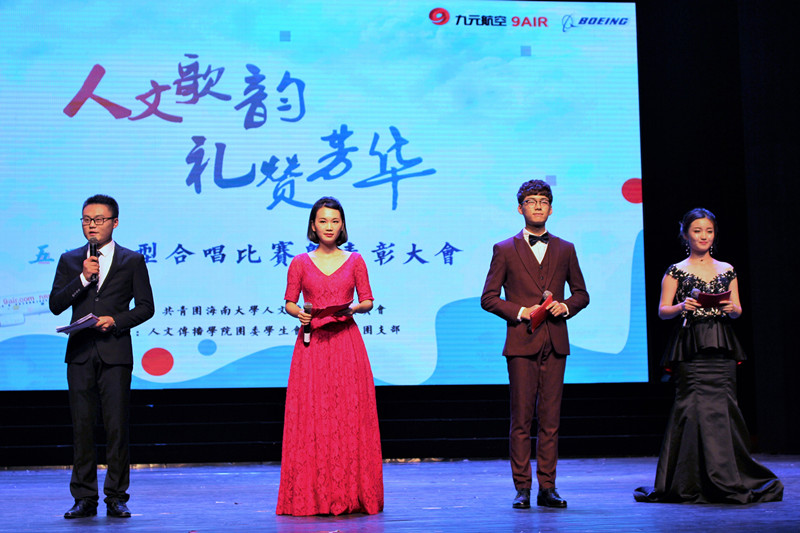 晚会正式开幕前,首先播放了人文传播学院团委一年以来的回顾总结视频,展示了人文团学风采。五四大型合唱比赛暨表彰大会在Air音乐社特邀嘉宾的歌曲表演中正式拉开帷幕。本次晚会由各年级各专业分别派出一支团队以合唱比赛的形式向观众呈现,由评委进行打分,最终评选出各参赛队伍的名次。整场晚会高潮迭起,互动不断,给在场的观众带来了一场精彩的视听盛宴。15级汉语国际教育带来的歌曲串烧《side to side》充分彰显了当代新青年大胆而自信的姿态;16戏剧影视文学专业的同学带来的朗诵与合唱《恰同学少年》,带我们回味了芳华少年;17级新闻传播学类同学的歌舞《不忘历史不负芳华》以旁白、舞台剧、合唱的形式,展现了不同时代的青春歌韵;中场由笑声工作坊的同学演绎的相声《绿色出行》号召我们践行绿色环保,在笑声中享受绿色生活;17级戏剧影视文学专业带来的合唱《上下五千年》,向我们展示了华服之美,再现康桥之上徐志摩的思念;最后,伴随着团学青成员带来的歌舞串烧《明日不害怕》,本次合唱比赛表演环节圆满结束。在评委们公平、公正的评分下,比赛结果也在大家的期待中公布。17级戏剧影视文学队伍以本场最高分获得比赛一等奖。17级中国语言文学类一、二班,17级新闻与传播类一、二班凭着优异的成绩获得二等奖,其他各专业表演团队收获三等奖和优秀奖。此外,通过“海大人文青年”微信平台进行的节目网络投票评选的“最具人气奖”由16级戏剧影视文学专业队伍获得。