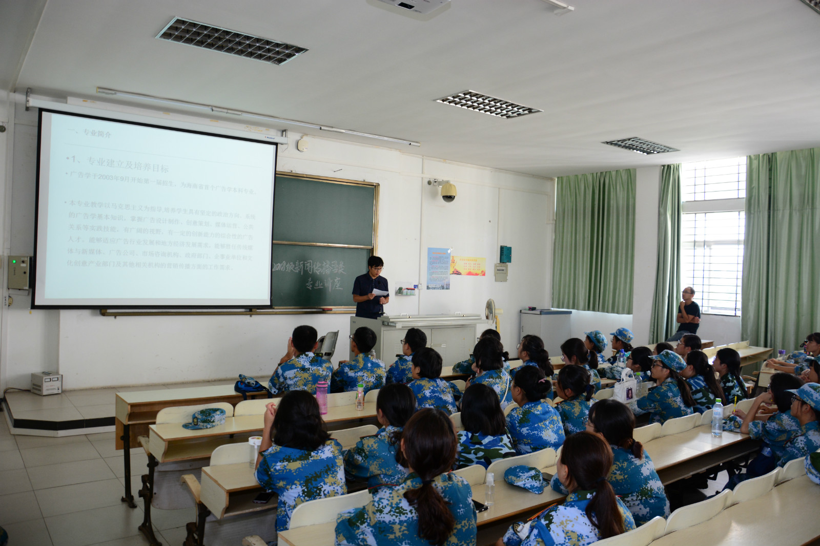 最后,孙晓媛副书记做大会总结,对新生表示祝福和感谢,开学典礼顺利结束。随后,各专业新生接受入学专业教育,各系主任和专业老师围绕专业培养、学科发展、学习规划、学习方法等问题与新生进行交流,并为他们答疑解惑,让他们对大学生活有了一定的了解。
