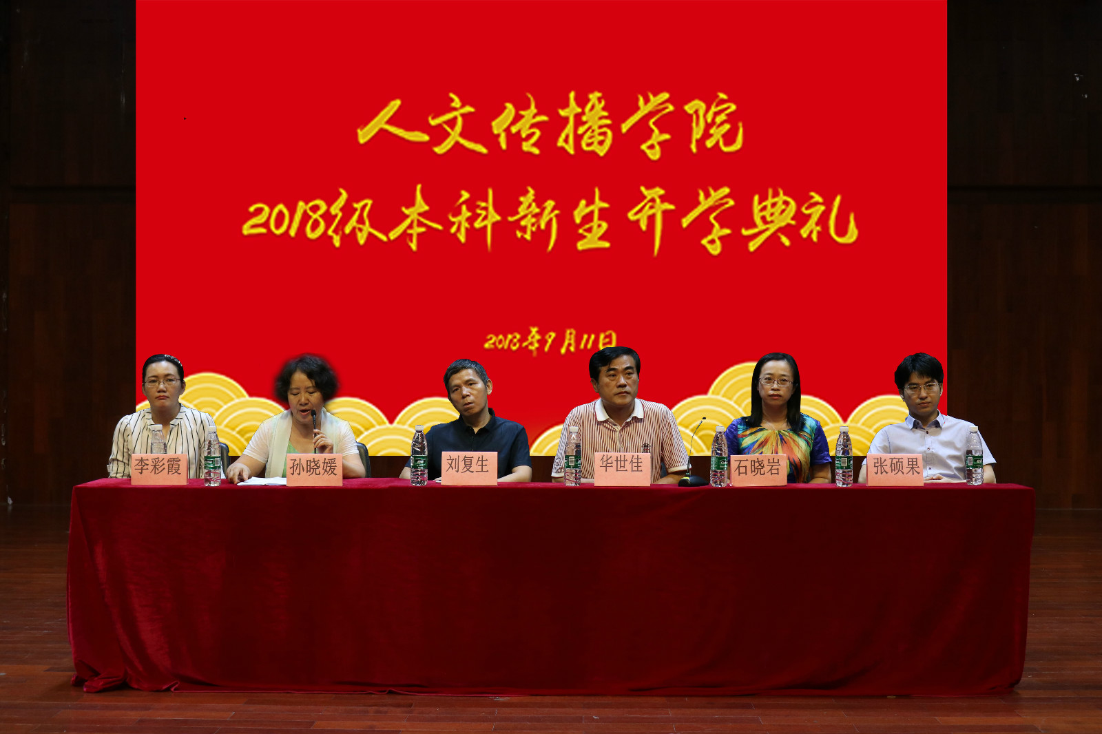 2018年9月11日下午,人文传播学院2018级新生开学典礼暨专业教育在海甸校区音乐厅顺利举行,院长刘复生、院党委书记华世佳、院党委副书记孙晓媛、副院长石晓岩、张硕果、李彩霞出席活动,到场的还有各系主任、各新生班主任、辅导员、教师代表、老生代表以及2018级人文传播学院全体新生。院党委副书记孙晓媛主持本次开学典礼。