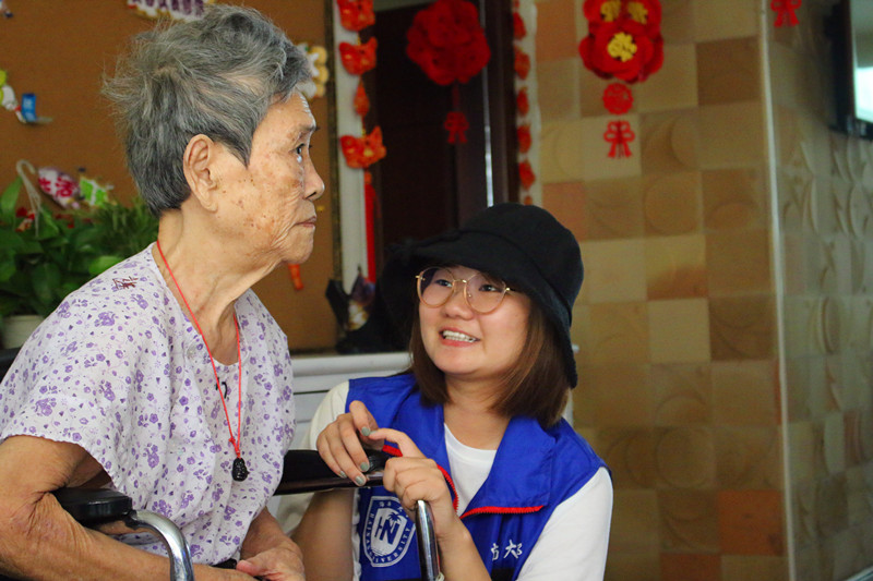 志愿者陪老人聊天