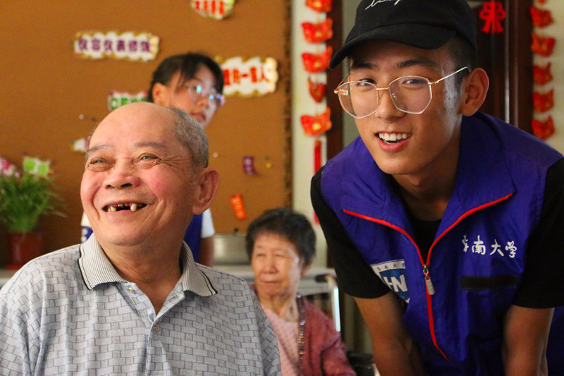 志愿者与老人愉快相处