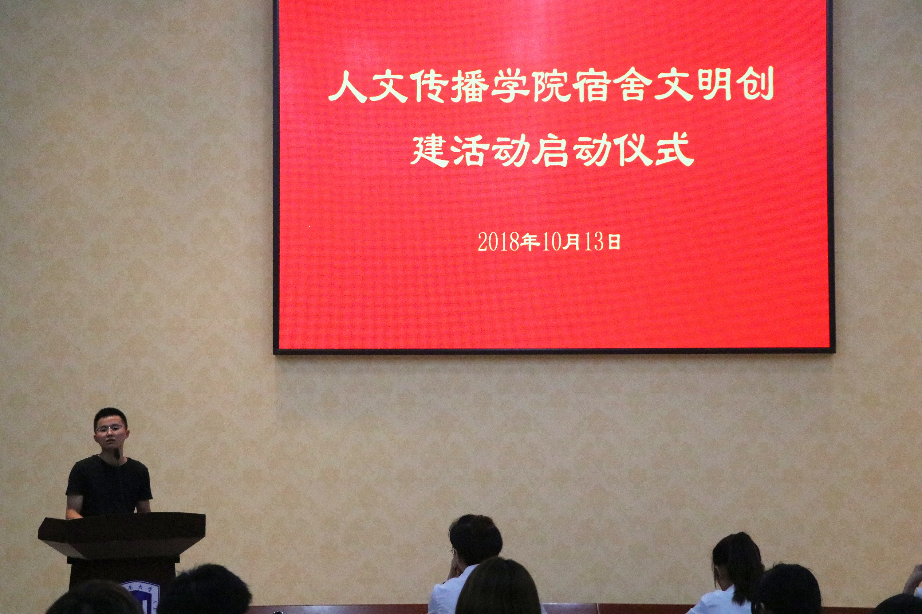 为营造良好的宿舍文化氛围,美化宿舍环境,展现丰富多彩的大学生活,同时为了确保学院宿舍文明创建活动的顺利进行,10月13日晚,人文传播学院2018年宿舍文明创建活动启动仪式,在海甸校区思源学堂多功能厅顺利开展。人文传播学院学工办李润东老师及院团学组织全体成员参加了此次启动仪式。
