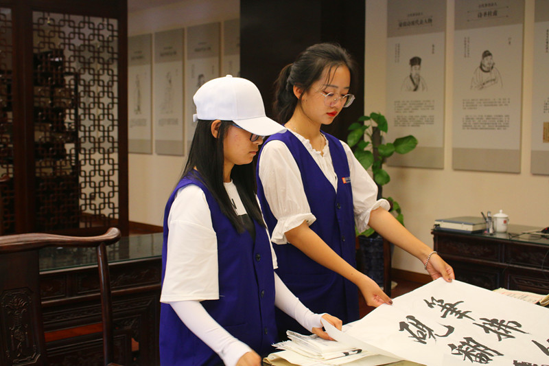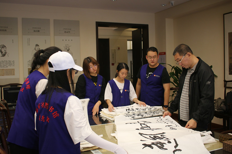 志愿者整理书法作品