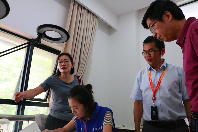 实践学生进行古籍修复、古籍电子化处理等实践工作情况。走访结束时,黄绵佳副处长再次对古籍保护中心配合迎评工作表示了诚挚的感谢,也希望借助此次本科教学评估工作,进一步推进学校与省古籍保护中心之间的紧密合作。