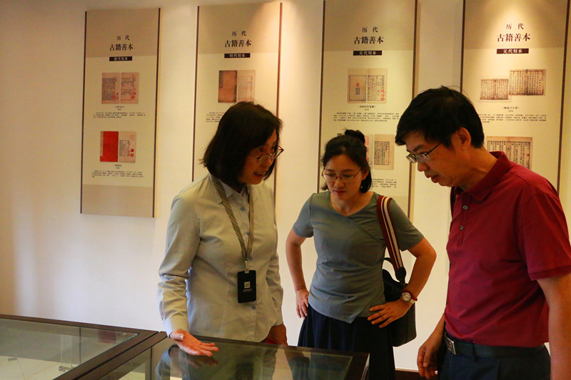 张蕊副馆长引导黄绵佳副处长一行参观古籍展区