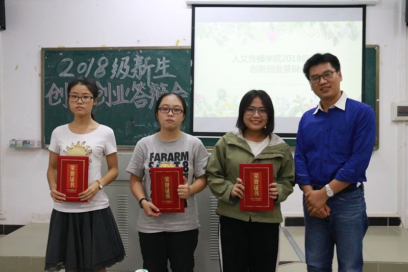 经过工作人员紧张的统分,最终决出了本次竞赛的获奖队伍,包括一等奖一名,二等奖二名,三等奖三名以及优秀奖四名。其中,《新兴网络文学对大学生思想深度的影响》团队取得桂冠,荣获了本次创新创业竞赛的第一名。随后,评委老师为各获奖团队颁发证书并合影留念。