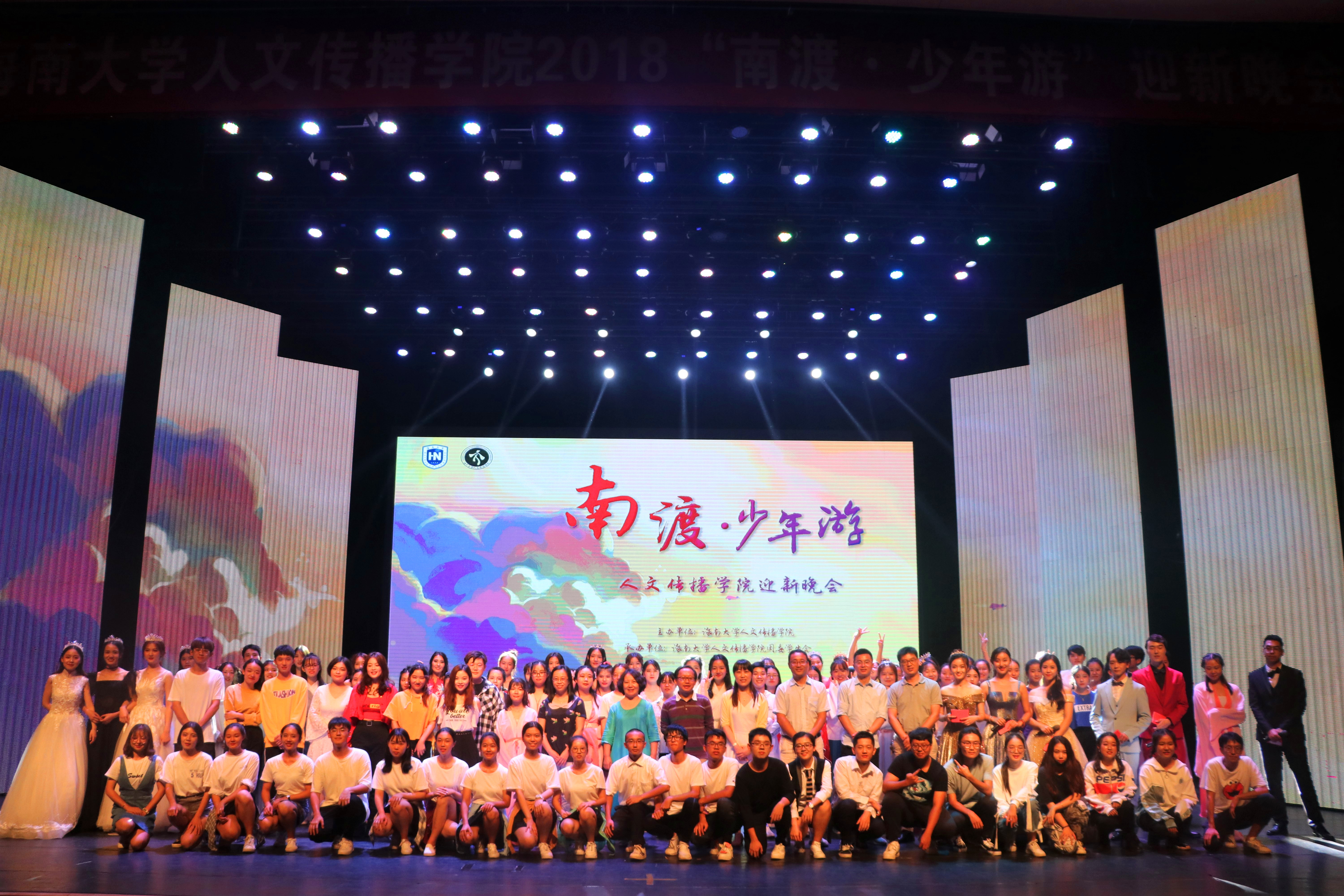 2018年11月18日19:30,人文传播学院“南渡·少年游”主题迎新文艺晚会在思源学堂隆重上演。人文传播学院党委副书记孙晓媛,副院长石晓岩、李彩霞,教务办老师王春嵩、戏剧影视文学系教师汪荣以及学工与团委办公室全体辅导员莅临晚会现场。整场晚会精彩纷呈,为观众们带来了一场精妙绝伦的视听盛宴。