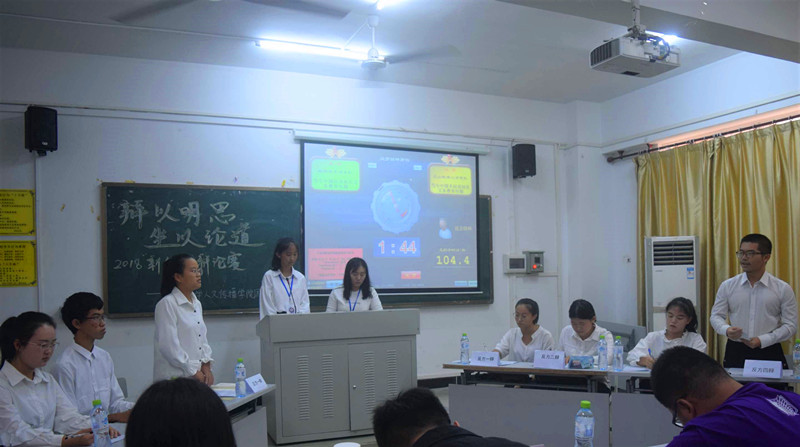 11月24日下午,2018人文传播学院“新生杯”辩论赛决赛在城西校区教学楼5A05成功举办。校辩论队副队长温立博,土木建筑工程学院辩论队队长孙钰涵,女同做爱
