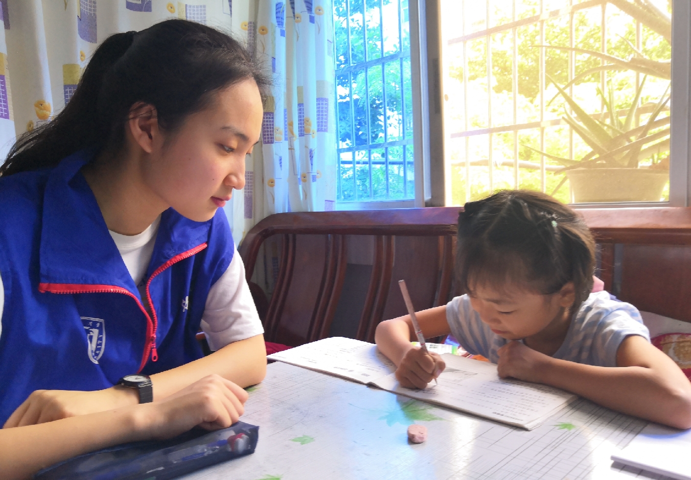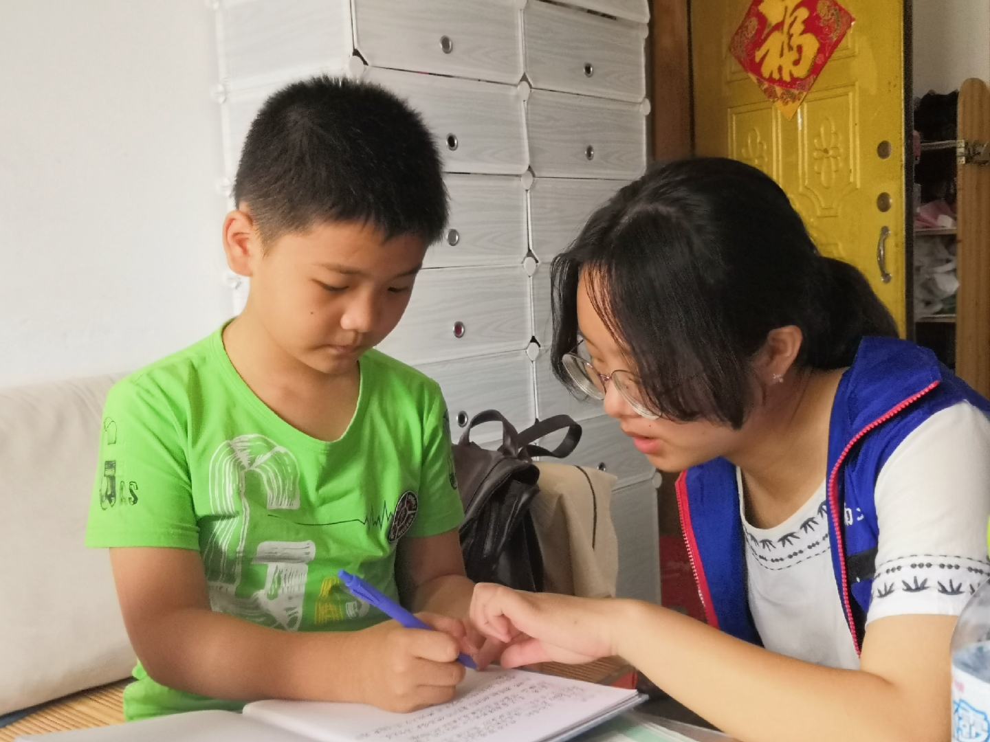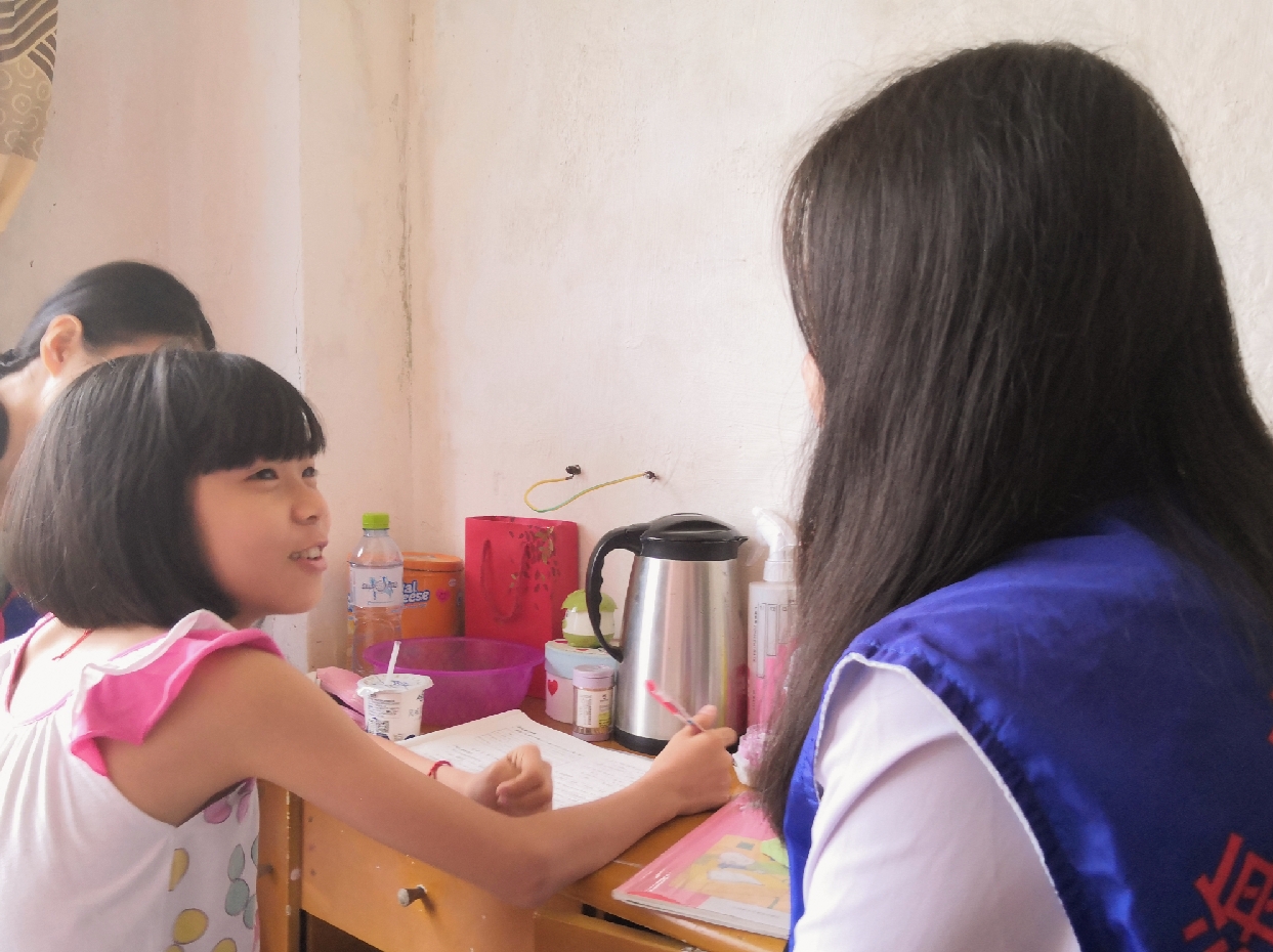 志愿者们经过几次活动,与孩子们的关系亲密。当志愿者们到达各自所负责的家庭时,孩子们热情地向志愿者们打招呼,并积极主动地将自己的课堂作业交予志愿者检查纠错。志愿者们通过与孩子们的交流,了解孩子们的学习状况,随后,根据孩子们的学习需求制定了相关学习计划。志愿者们分工明确,有条不紊,在确保孩子们可以学习吸收基础知识的同时,不断地拓展新的知识点,锻炼孩子们思维能力。随着时间的流逝,此次活动也在愉快的学习氛围中落下了帷幕。