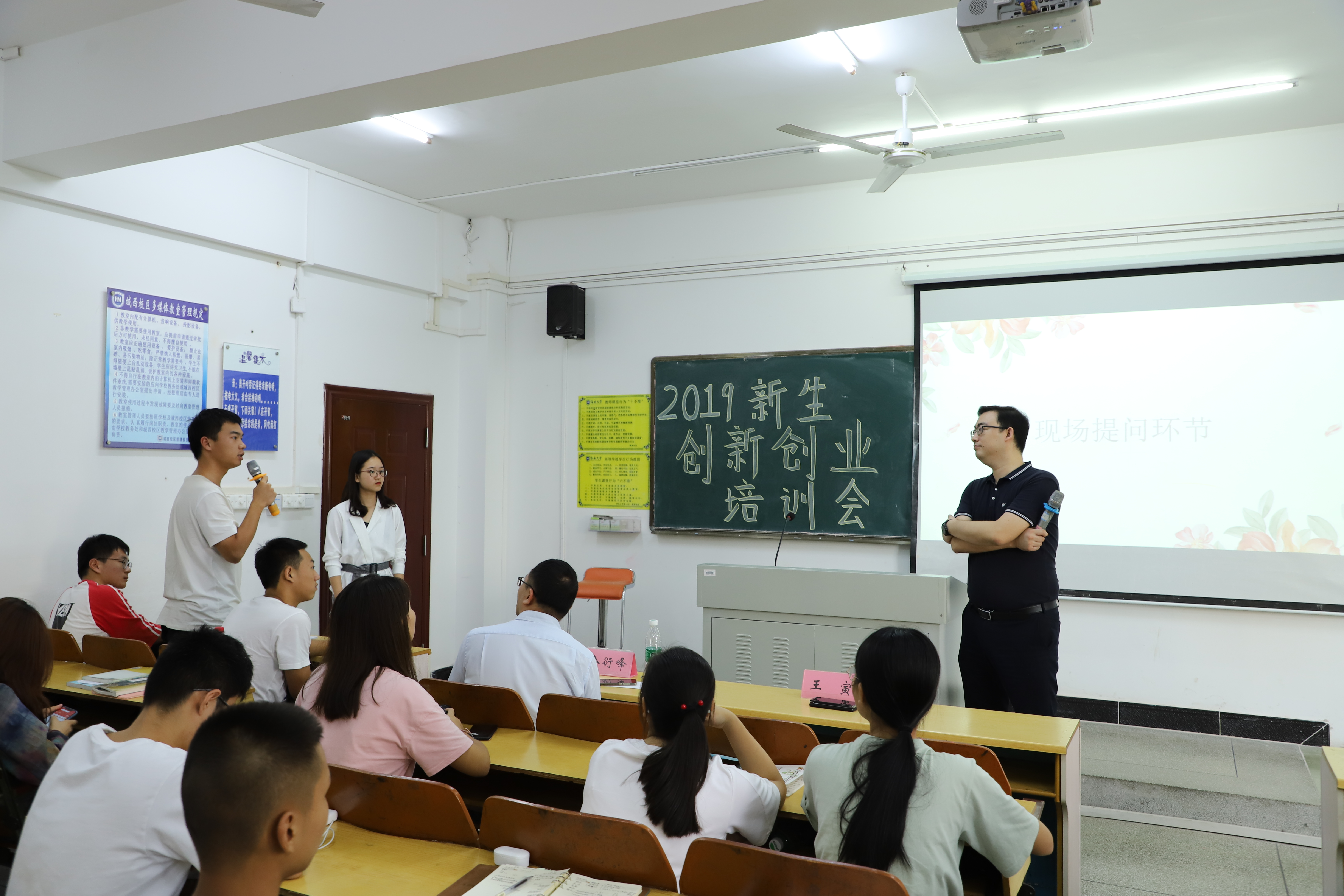 本次培训会为人文传播学院“青春聚力·创新同行”2019级新生创新创业系列活动的第二期,主要面向参赛学生团队,为有意愿参赛的同学做进一步培训。会议伊始,主持人介绍了到场嘉宾并对其表示热烈欢迎。随后,公衍峰老师表达了对同学们的殷切期望,鼓励同学们积极参加创新创业活动。
