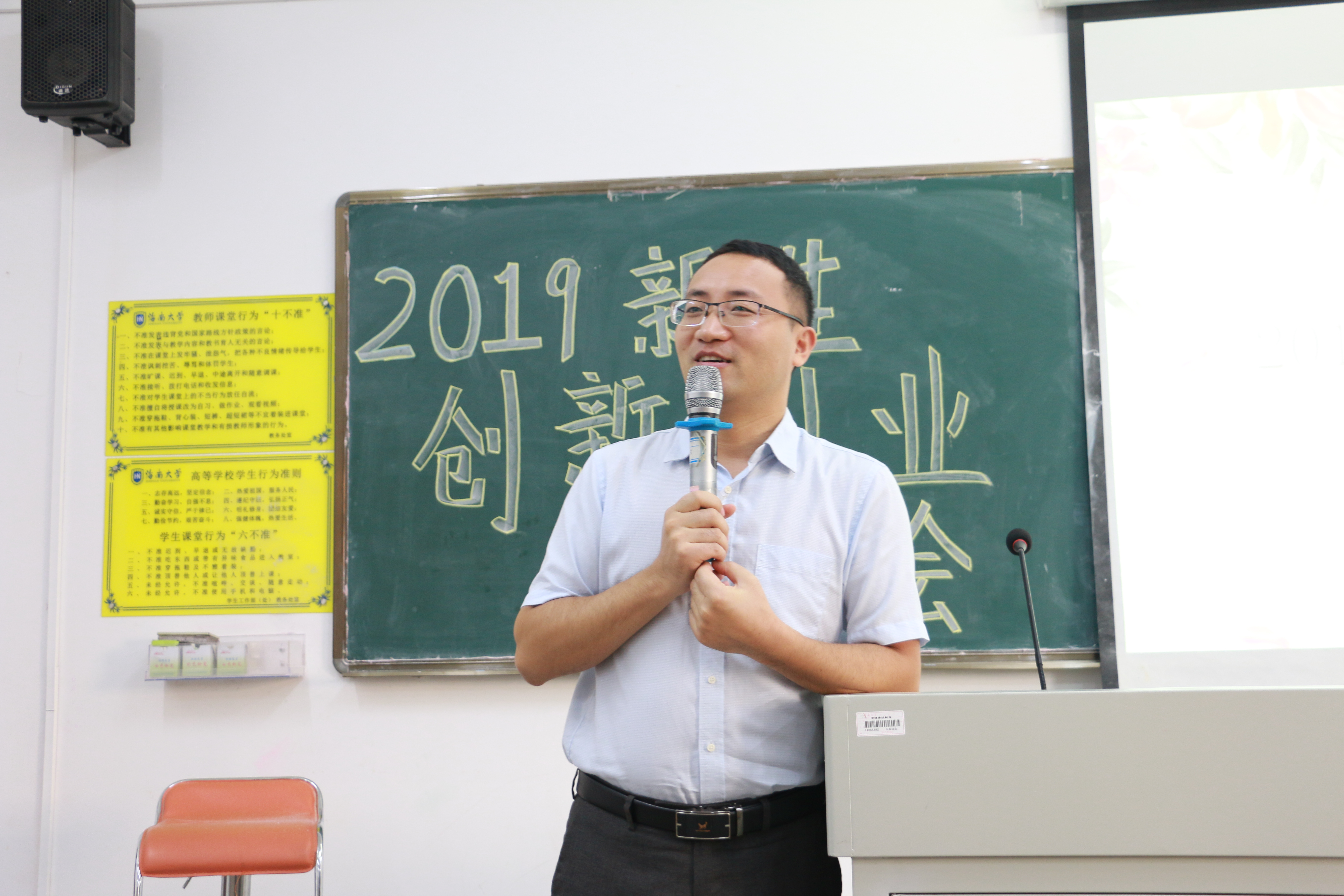 大学生创新院执行院长王寅老师担任主讲嘉宾。人文传播学院团委书记公衍峰老师出席了此次活动。约80名人文传播学院19级新生参加了本次培训会。