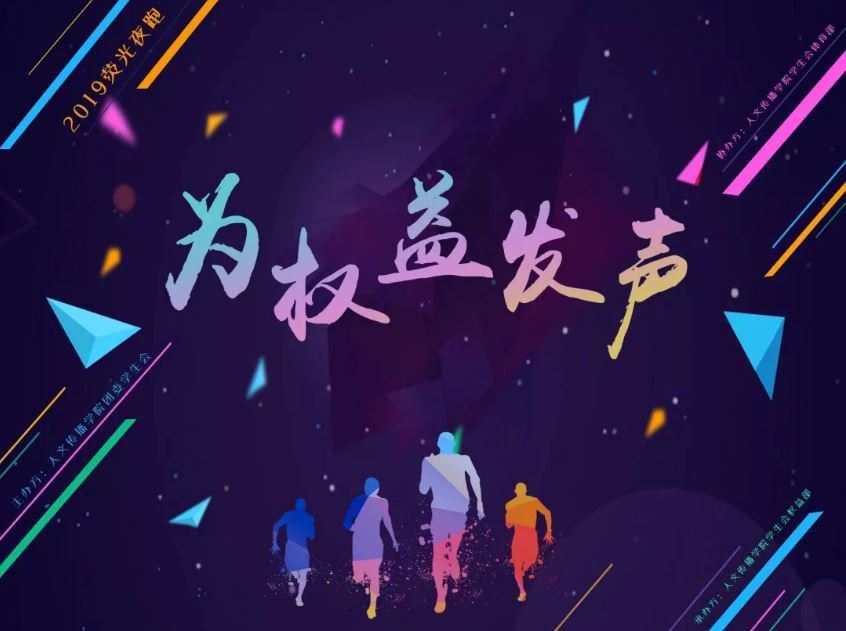 为增进同学们的维权意识,进一步了解权益知识和学生会权益部的部门职能,人文传播学院学生会权益部于2019年11月9日夜晚,在海甸校区新南门广场组织的“荧光夜跑——为权益发声”活动顺利举办。人文传播学院学生会主席钟一凡、副主席孙靖媛,政治与公共管理学院权益部部长敖利婷、李美琪,机电工程学院权益部部长张文俊,动物科技学院权益部部长徐欢,信息与工程学院权益部部长彭代鹏作为本次活动嘉宾出席此次活动。学院部分17、18、19级同学参与此次夜跑。