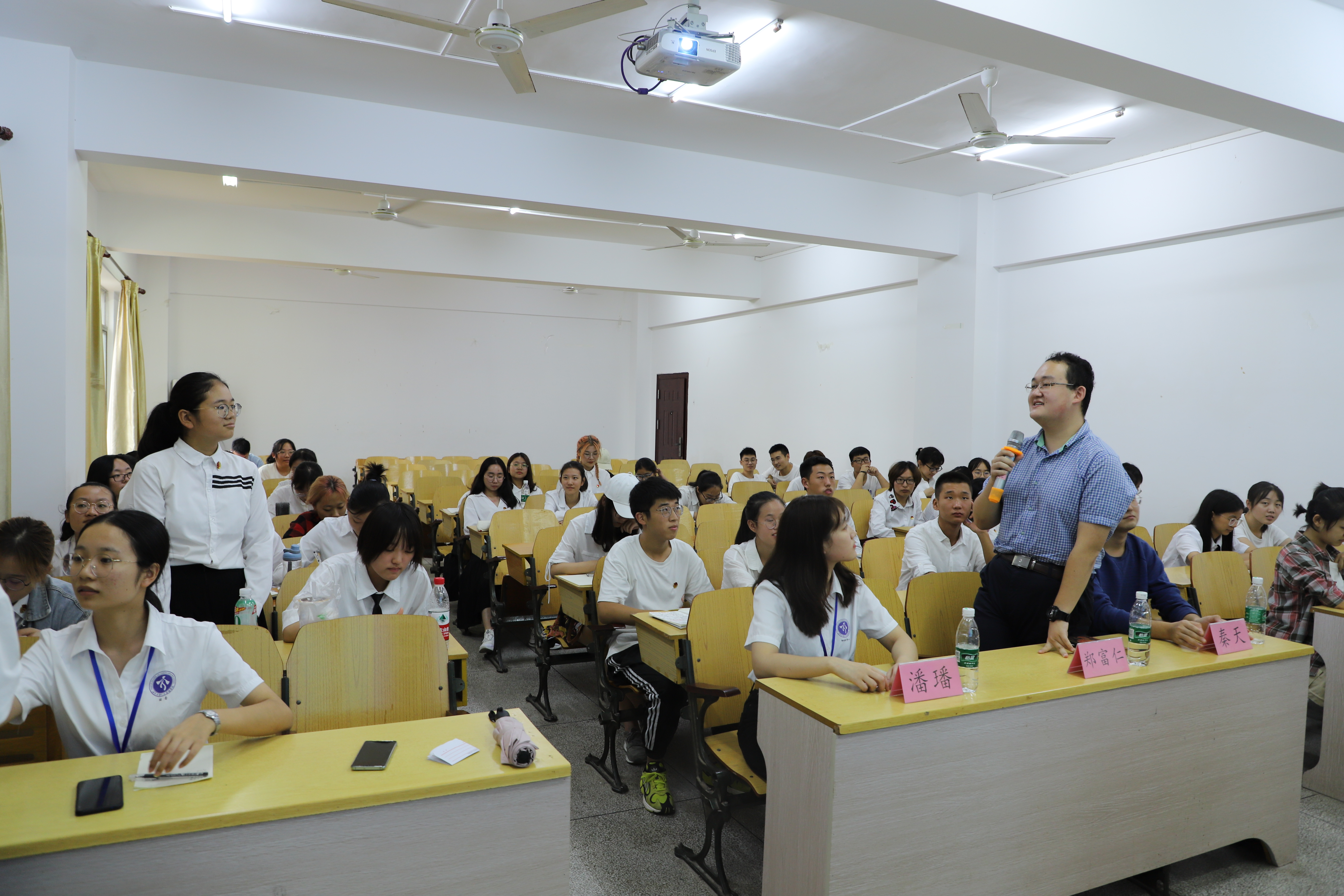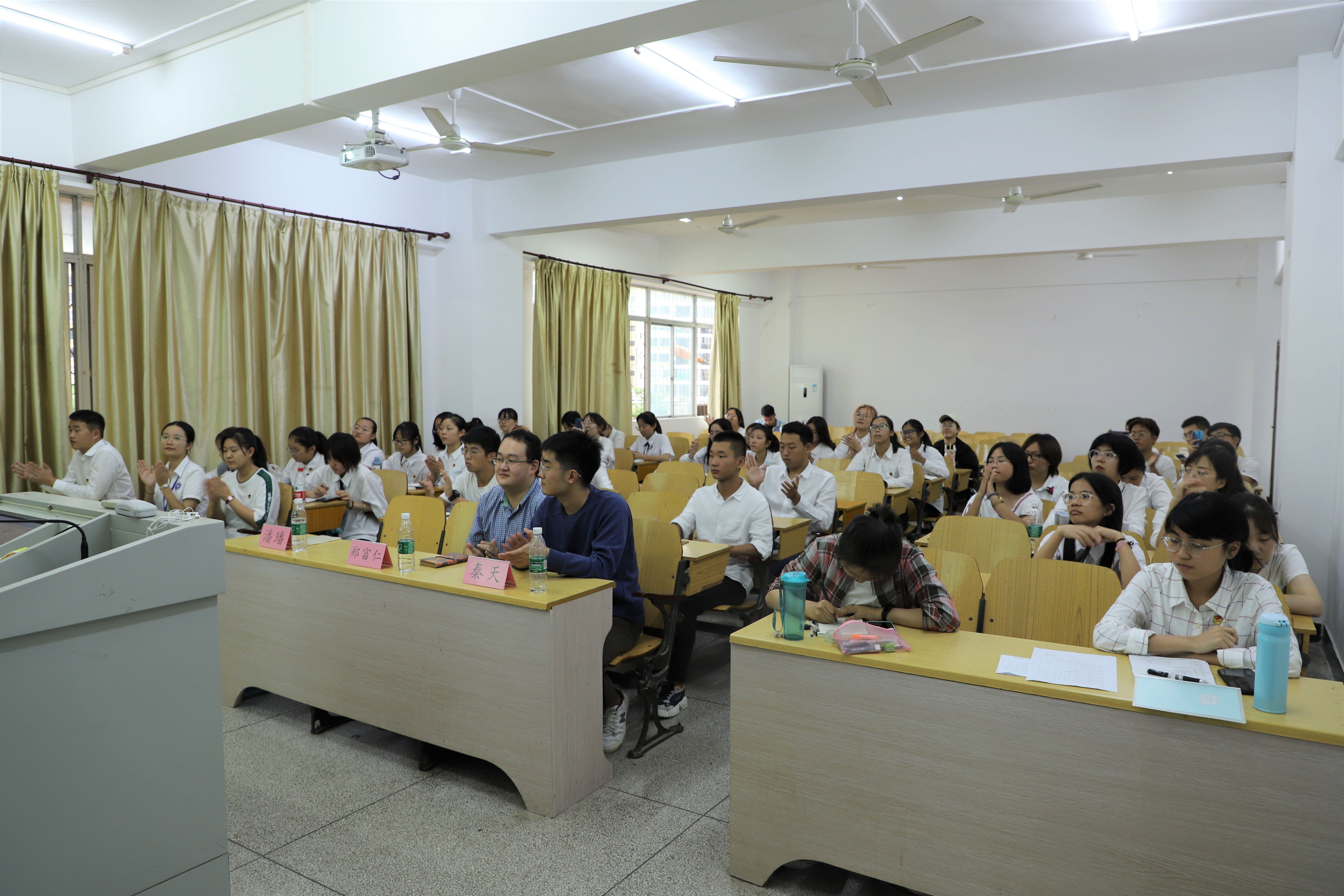 首先秦天从学生工作、组织定位、个人素质等四个方面系统讲解了学生组织工作,特别提及了工作中的宝贵收获。随后郑富仁从工作和生活两个方面分享了自己的想法和建议,指出要协调好二者之间的关系。最后,潘璠着重强调了工作品质和工作能力,并推荐了一些博主与公众号,以期提高同学们的工作能力。三位主讲人均从自身工作经历出发,讲解生动有趣,给同学们上了宝贵一课。最后的提问环节中同学们就干事工作上的问题进行提问并得到了满意解答。