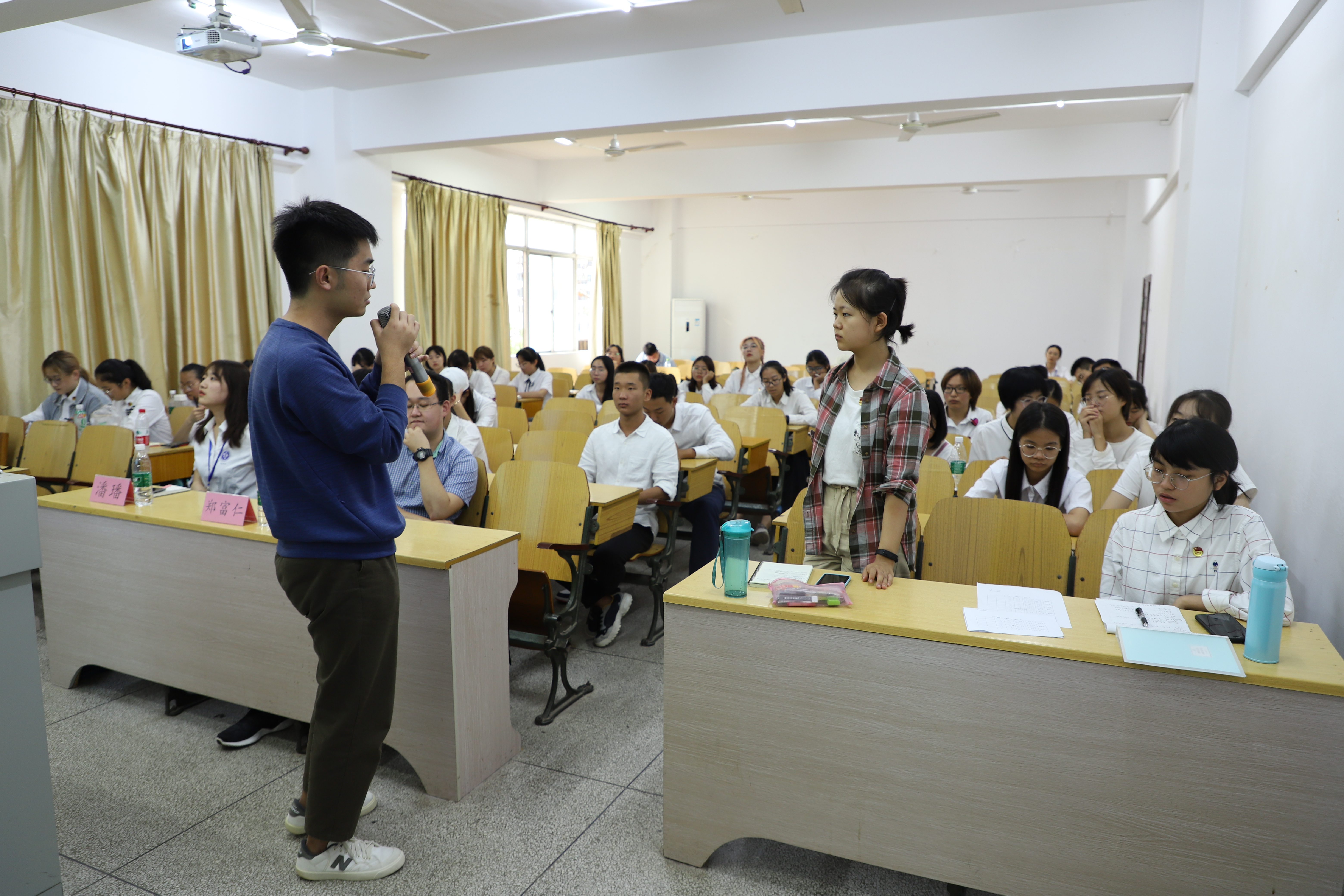 首先主持人对今天的主讲人作简要介绍,随后李文啸立足自身多年班长兼职团支书的经验,重点从班级角度出发,分别从生活、工作、学习三个方面讲述如何发挥好班委的作用:对同学们真诚友爱、充分调动每一位同学积极性,让其切实感受到自己的存在感和价值感、增强班级凝聚力,真正将集体打造成为共同的家。而后,郭瑞鹏从团支部的角度,重点讲解了团支部建设以及团支部活动,团支部建设涵盖组织建设、制度建设、思想政治建设等多个方面,活动则包括志愿服务类、创新创业类、文娱活动类等多种类别,为团支部建设开拓新思路。在学长学姐对本讲内容讲解完后,参与培训的同学们就本次会议的内容积极发问,二位学生副书记也悉心答疑解惑。