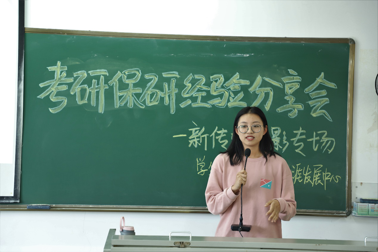 2019年12月1日15:00,人文传播学院生涯发展中心生涯探索部和学生会学习部联合举办了本届考研保研经验分享会。在新传与戏影专场中,我们邀请到了四位学长学姐分享她们的经验。