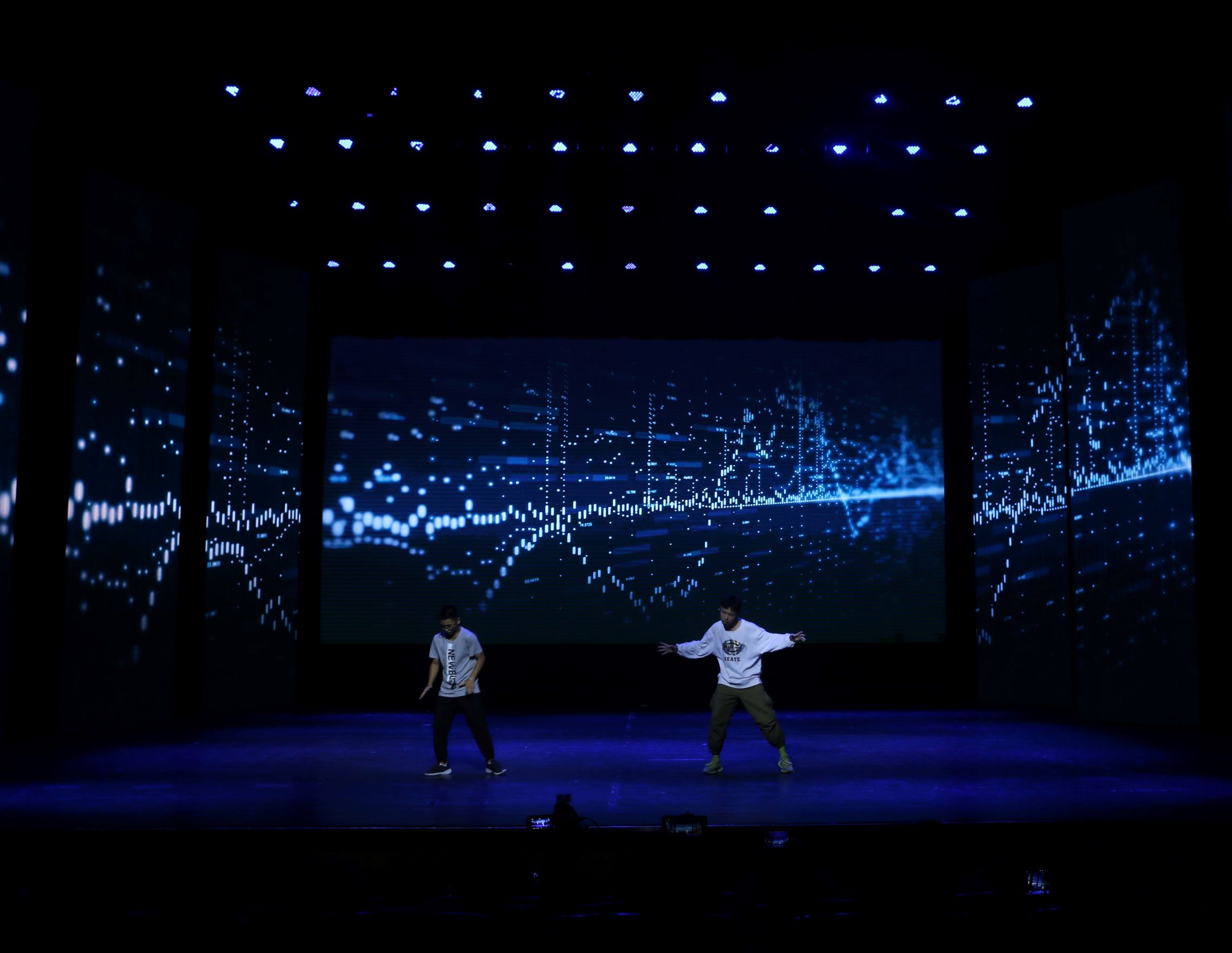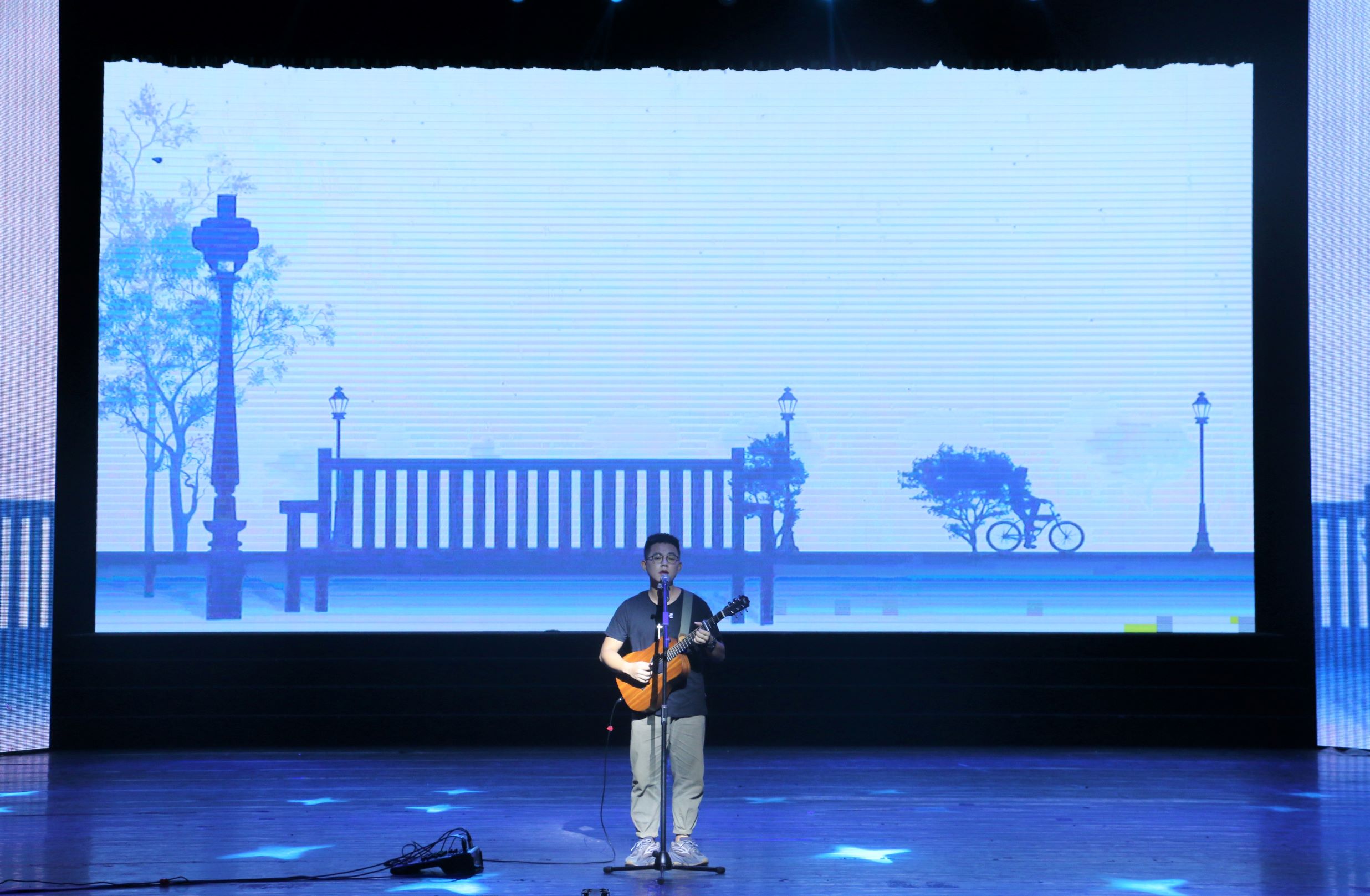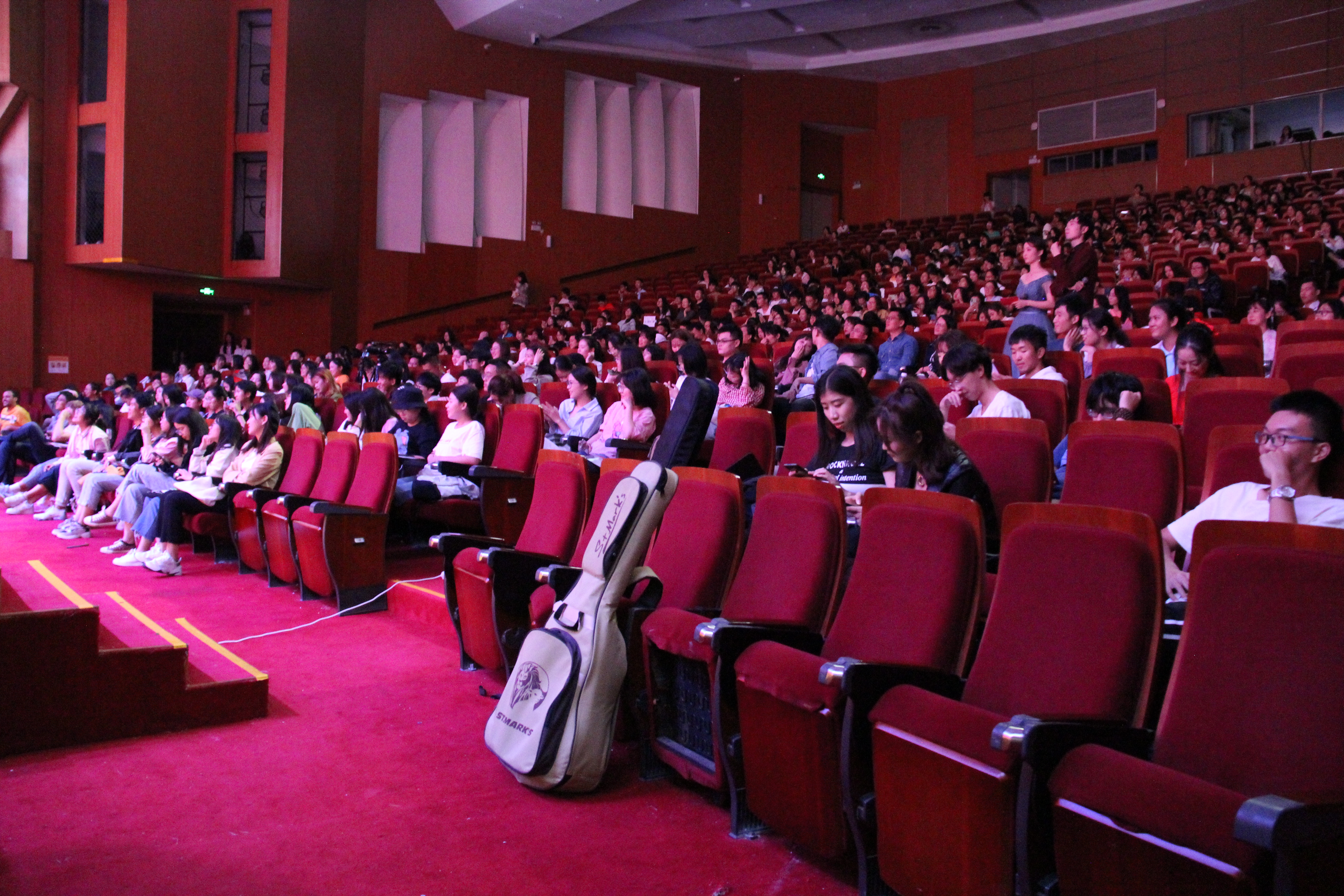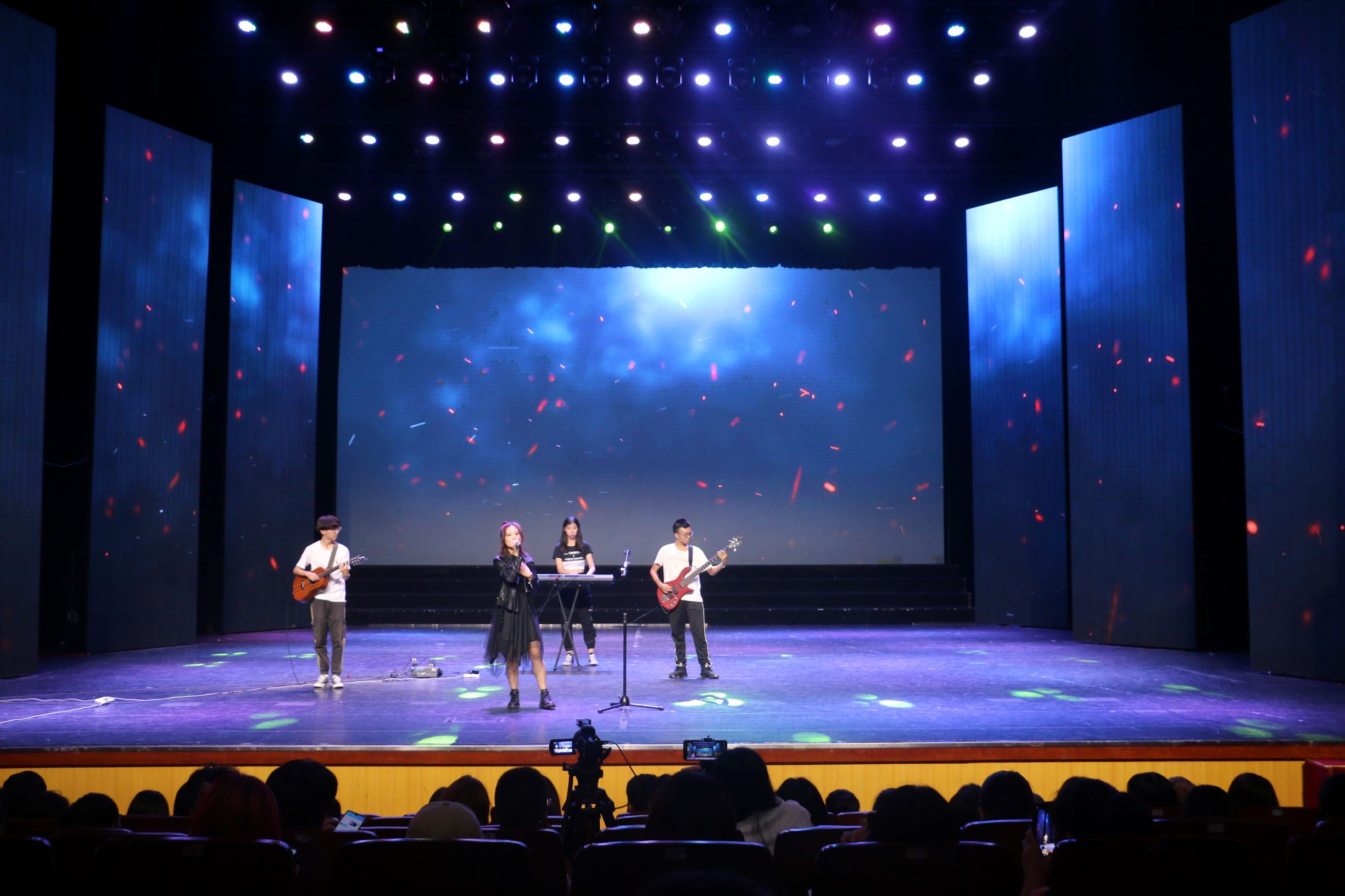 抽奖过后,白加黑乐队的《被驯服的象》带我们走进"太空备忘记"的故事,动物园里被驯服的象有着高大强壮的外表,内心却脆弱又悲伤,掌声赋予的荣耀难以抵挡一路的风霜。吉他,贝斯,电子琴与主唱的完美配合带着观众们拨开迷雾,寻回真实的渴望。他们用自己的精彩演出征服了观众。随后,文工团舞蹈组的同学们以一曲《Gogobebe》将时代的气息和绚烂的舞姿诠释得淋漓尽致,尽显年轻的跃动与张扬,会场再一次因这些充满活力的姑娘们而升温。乘着热舞的余温,笑声工作坊为大家带来了相声《一生所爱》,用诙谐的语录传达人生哲理,观众席上一时间充满欢笑与掌声。