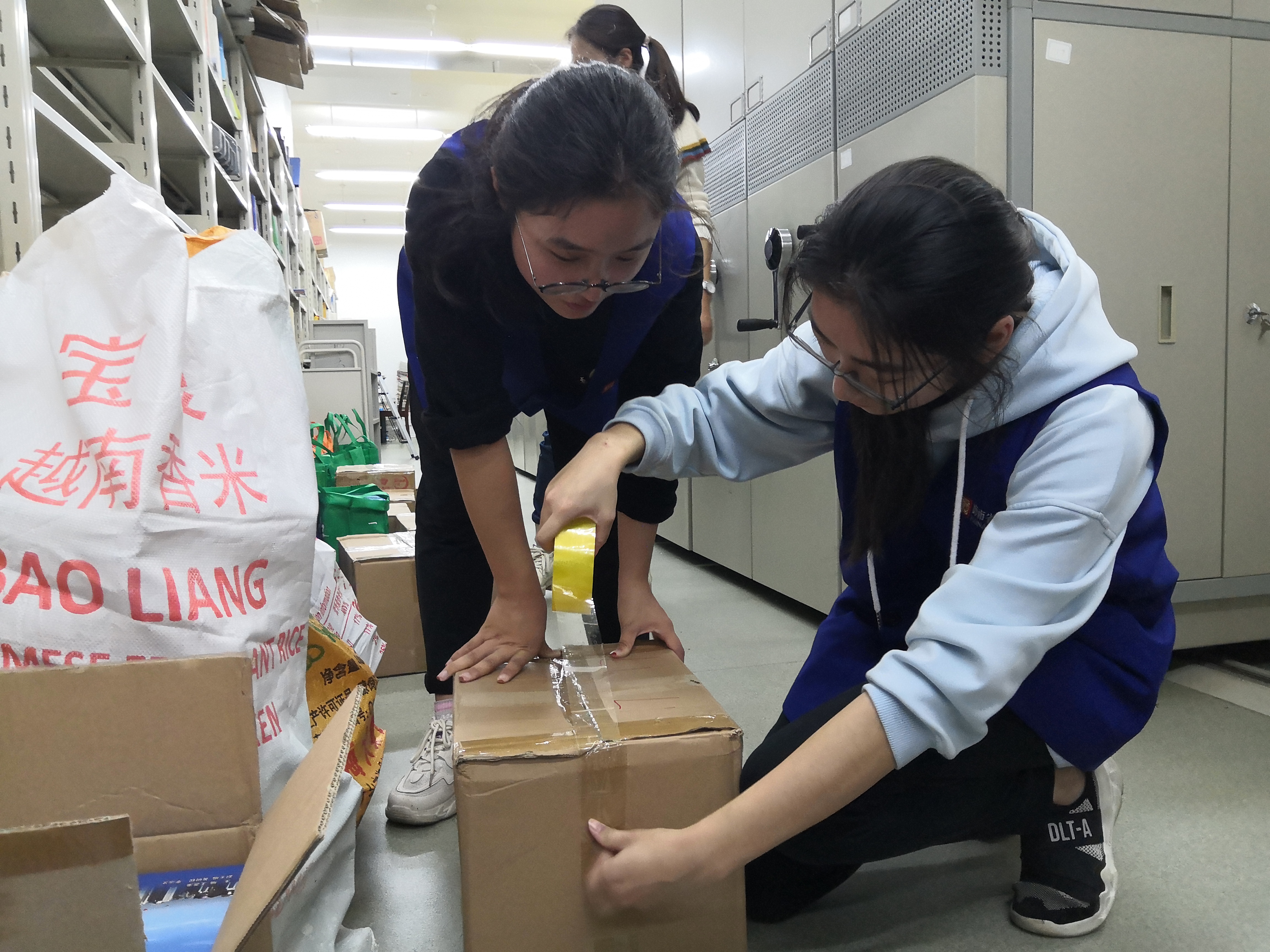 所有工作都有条不紊地进行,志愿者们完成了纸张裁剪,印刷成品分拣与书籍装箱处理等工作。活动历时两个小时,最后在志愿者们的笑颜中,本学期古籍保护特色活动完美落幕。