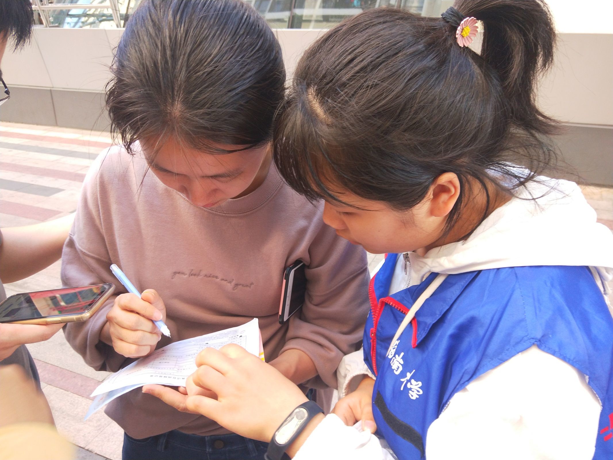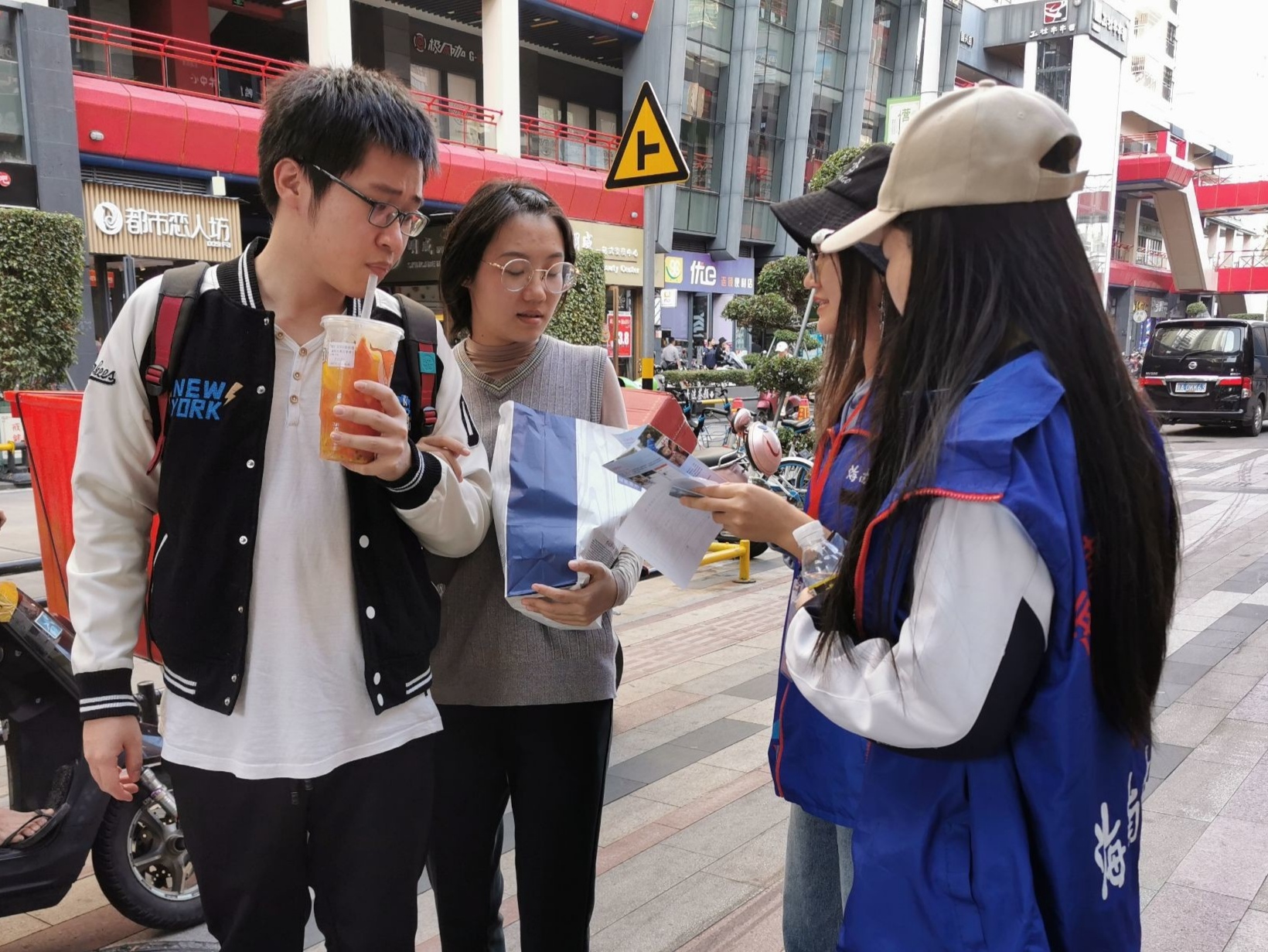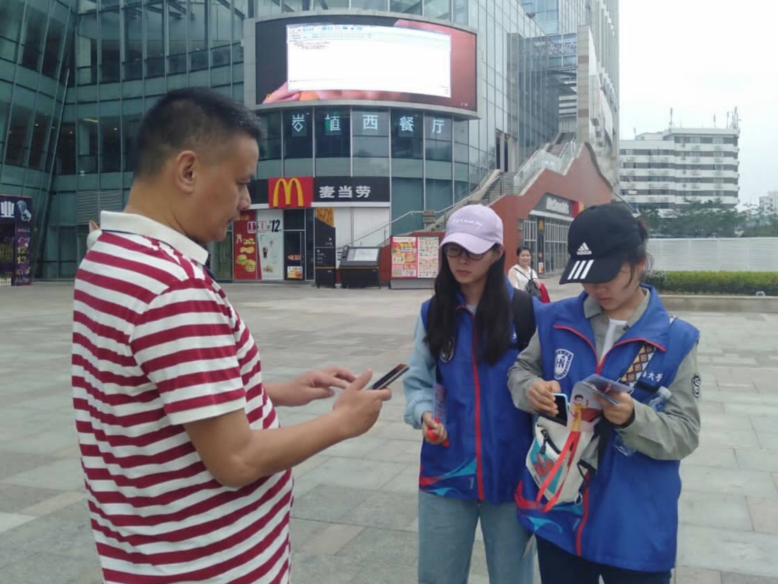 下午三时许,志愿者到达活动地点,准备进行当天的志愿活动。活动正式开始前,先由领队人员向志愿者强调注意事项,随后志愿者两人一组,在邮局附近开展活动。暖暖冬日阳光洒落在两侧街道上,也温柔地落在每一个奔波在路上的志愿者身上。志愿者并没有因为这是本学期最后一次活动而懈怠,仍旧保持着最开始的那份初心,尽职尽力地向每一位过路的行人介绍“善行100”志愿活动。面对着一次次重复的解释与宣传,志愿者脸上没有丝毫的不耐之色,他们反而为能更好地推广“善行100”,能够让更多人加入“善行100”的爱心捐款活动中来帮助相隔万里的孩子们而开心。