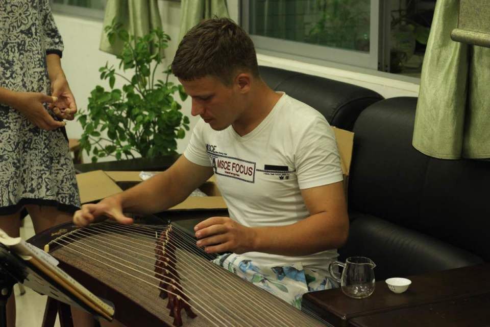 留学生学习古筝