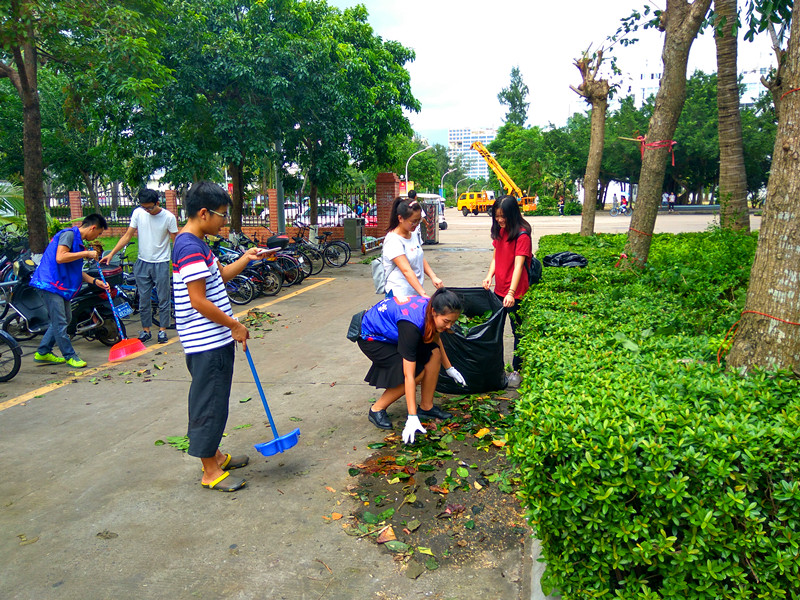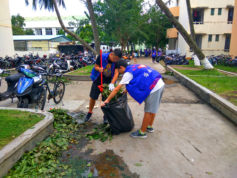 美丽校园是所有海大学子共同的家,作为海大的一员,我们有义务为维护家园出一份力。在志愿者们的辛勤劳动下,我们终能抵抗台风带来的坏的影响,还所有海大学子一个美丽整洁的家。