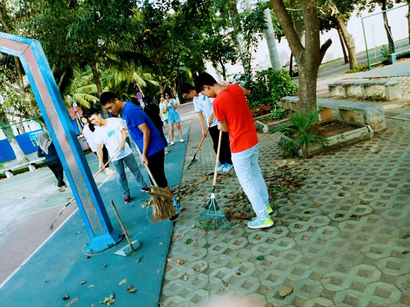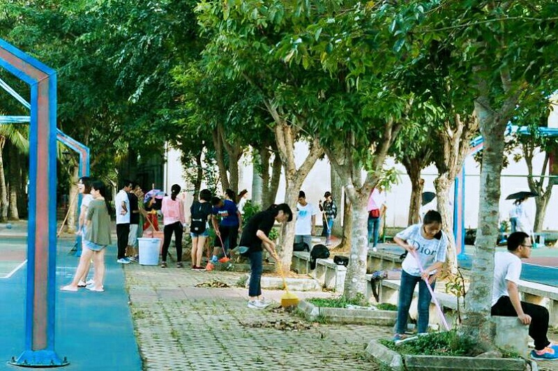 2016级志愿者以“志愿清扫,擦亮校园”为活动主题,在女同做爱