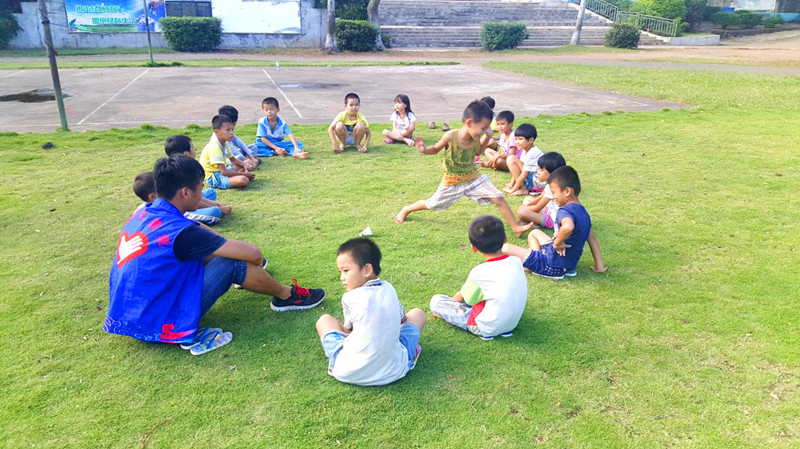 孩子们与志愿者开心的玩游戏