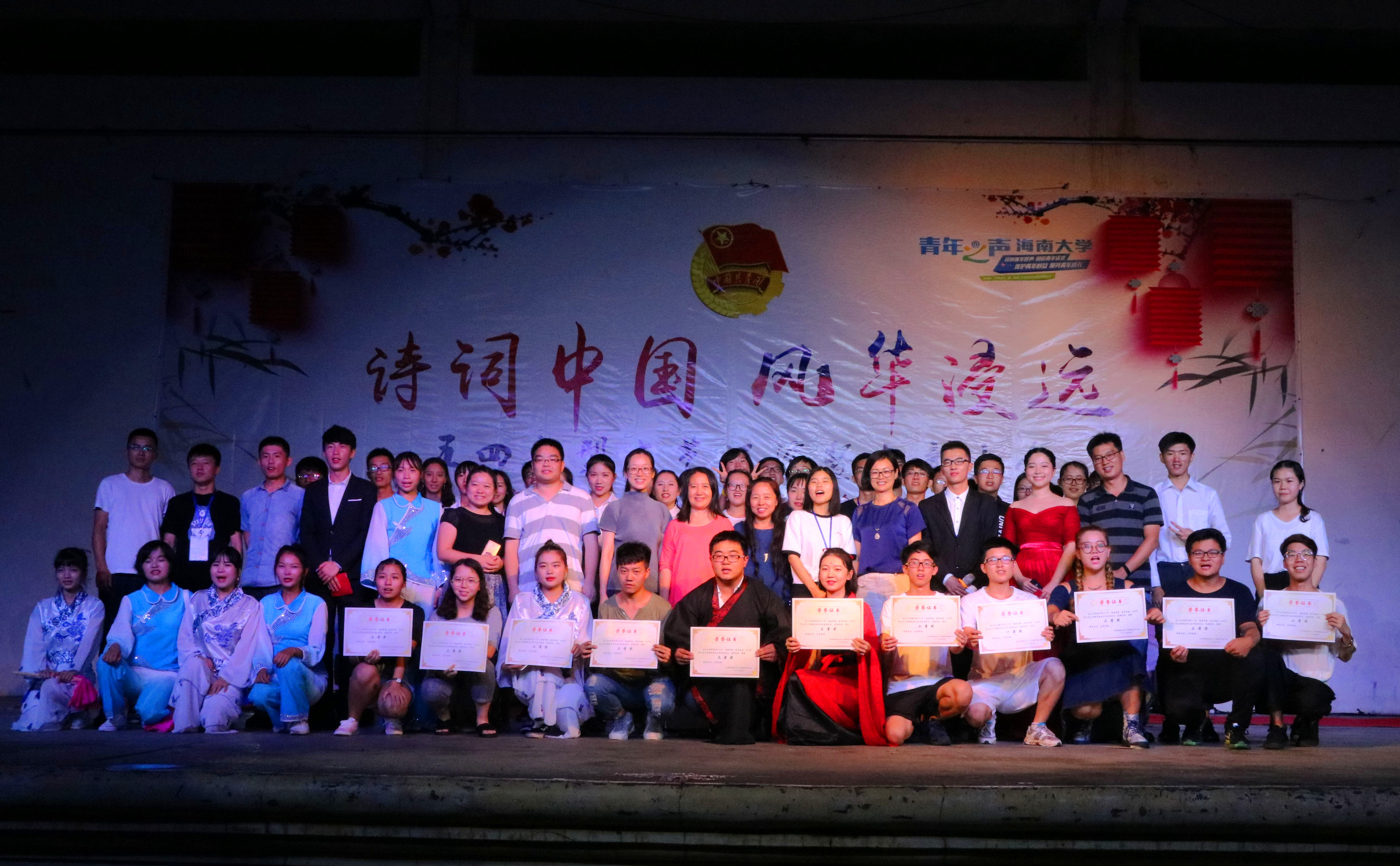 20点整,五四文艺汇演暨表彰大会在国学社以及特邀嘉宾的歌舞串烧的表演中正式拉开帷幕。本次文艺汇演由各年级各专业分别派出一支团队以比赛的形式向观众呈现,由评委进行打分,最终评选出各参赛班级的名次。晚会中,诗与歌舞的巧妙结合,向大家展现了中国诗词的魅力。15级汉语国际教育的同学表演的舞蹈《茉莉花》以整齐的阵容、优美的舞姿引起现场掌声连连。14级汉语国际教育的同学演绎的相声《学富五车》触发了全场的笑点,将古今中外的寓言故事环环相扣,现场欢笑不断。16级中国语言文学类三、四班同学带来的《将进酒》活灵活现的还原了李白、丹丘生、岑夫子三人饮酒作诗的情景,将李白的豪放与浪漫表现得淋漓尽致。16级戏剧影视文学的同学表演的《但愿人长久》将古筝、舞蹈、歌曲、朗诵串烧,碰撞出不一样的花火。最后,伴随着团学青成员带来的歌舞兼朗诵《荡起我们的中国心》,本次文艺汇演表演环节圆满结束。在评委们公平、公正的评分下,比赛结果也在大家的期待中公布。16级中国语言文学类三、四班以本场最高分获得本次汇演一等奖。16级戏剧影视文学、16级新闻传播、15级汉语国际教育凭着优异的成绩获得二等奖,其他各专业表演团队收获三等奖。此外,通过“海大人文青年”平台进行的节目网络投票评选的“最具人气奖”由16级戏剧影视文学获得。