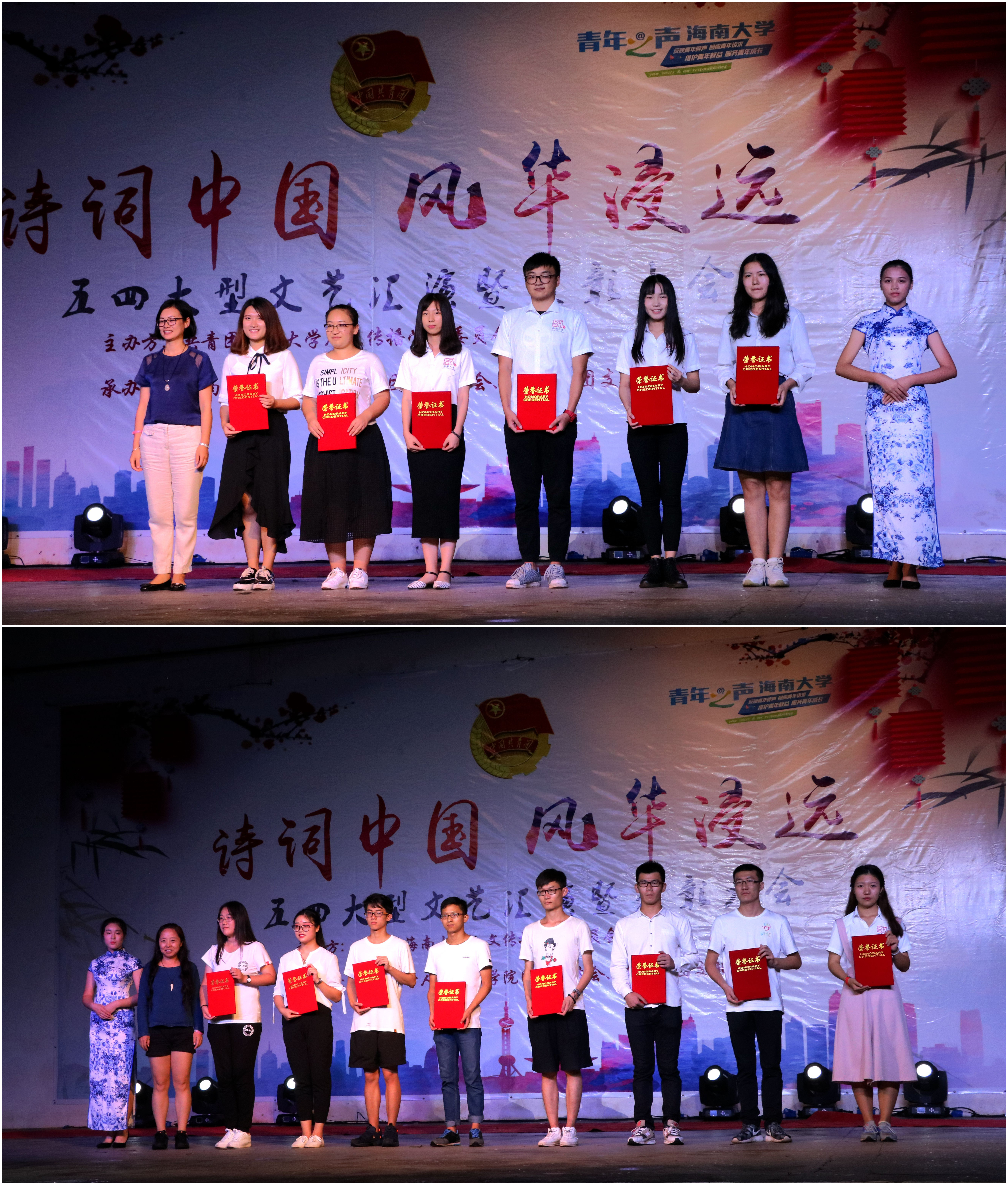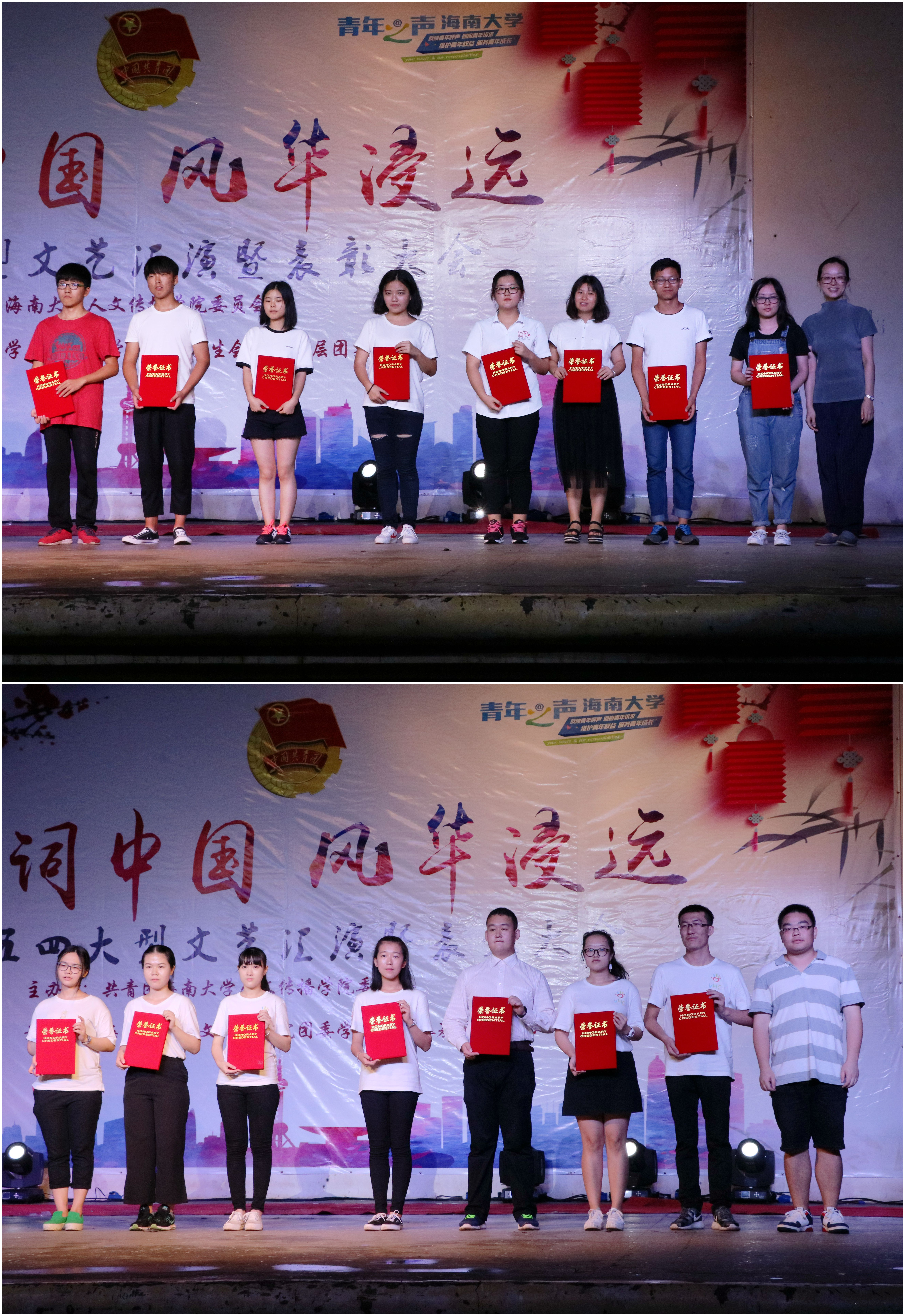 本次晚会中还对人文传播学院荣获校级的“优秀共青团员”、“优秀共青团干部”、“优秀学生会干部”、“五四红旗团支部”以及暑期社会实践及志愿服务先进集体和个人给予表彰。