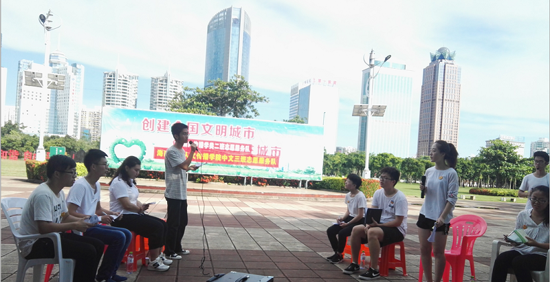 人文传播学院2016级汉语言文学类3班和新闻传播类2班,在海口市万绿园公园联合举办了“辩而发声·传播能量”公益辩论赛,辩论赛的主题为“我们该不该感谢生活给我们带来的磨难”。 2016级汉语言文学类3班和新闻传播类2班全体学生参加了活动,学工办辅导员王俊延老师作为嘉宾出席了活动。 活动开始前,同学们邀请万绿园的游客们就坐参与。所有观众就位后,双方辩手进行了激烈的辩论,观众也积极互动,特别是一些年长的社会群众给我们分享经验和教训。活动最后,到场嘉宾对辩论进行点评,对优秀辩手进行嘉奖,并带领同学们向游客分发由班级同学们制作的有关辩题的箴言书签。 本次公益辩论赛,使同学们和游客们对磨难有了更清晰的认识,对于提升同学们和游客们的社会主义核心价值观念也有所增益。展现了同学们的素养风貌,更彰显了人文学子对国家发展和社会责任的踊跃承担。