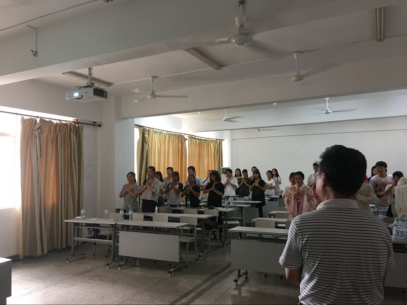 人文传播学院汉语言文学专业符其武老师、学工办王俊延老师作为嘉宾出席了本次活动,2016级汉语言文学类1班全体同学参加了此次活动。 活动开始时,班委成员首先播放了班级同学为符其武老师制作的“告白恩师”视频。在视频中,同学们分享了与符其武老师相处的点滴经历,传达了对符其武老师的敬仰之情。紧接着,2016级汉语言文学类1班全体宿舍长,合唱符其武老师最喜爱的歌曲《南泥湾》,并呈现了“诗歌情景剧”、“乐器演奏”、“感恩的心手语操”等一系列表演。活动结束时,班委成员播放了班级同学制作的“致谢恩师”视频。符其武老师与同学们分享了自己的教学感言,并为同学们演奏笛子独奏曲。王俊延老师也与同学们分享了活动感想,并为同学们送上真挚祝福。 本次感恩活动的顺利举办,增进了同学们的师生情感,提升了同学们的感恩意识,加强了班级凝聚力。在推进班集体健康发展的同时,更为老师和同学们留下值得纪念的回忆。
