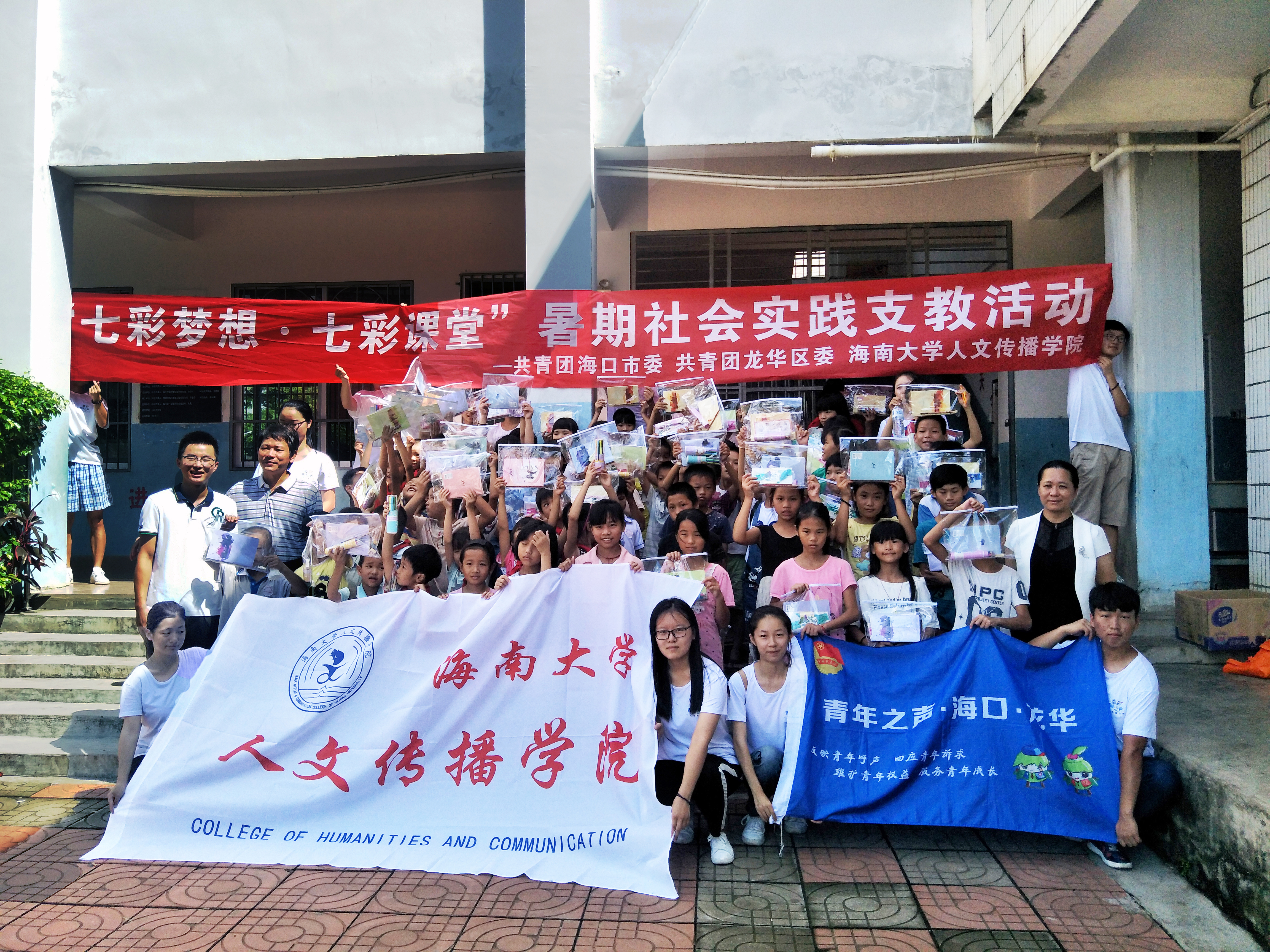 为响应大学生暑期“三下乡”活动精神号召,提高广大学生社会实践能力,增强社会责任感,7月11日上午,“七彩梦想·七彩课堂”人文传播学院暑期支教活动启动仪式,在海口市新联小学举行。仪式由支教队队长张雪佳同学主持,共青团龙华区委副书记唐梁娜、新联小学校长韦长炳、人文传播学院学工办李润东老师出席活动。此次活动由人文传播学院主办,获得了共青团海口市委、共青团龙华区委、海口市新联小学的大力支持。