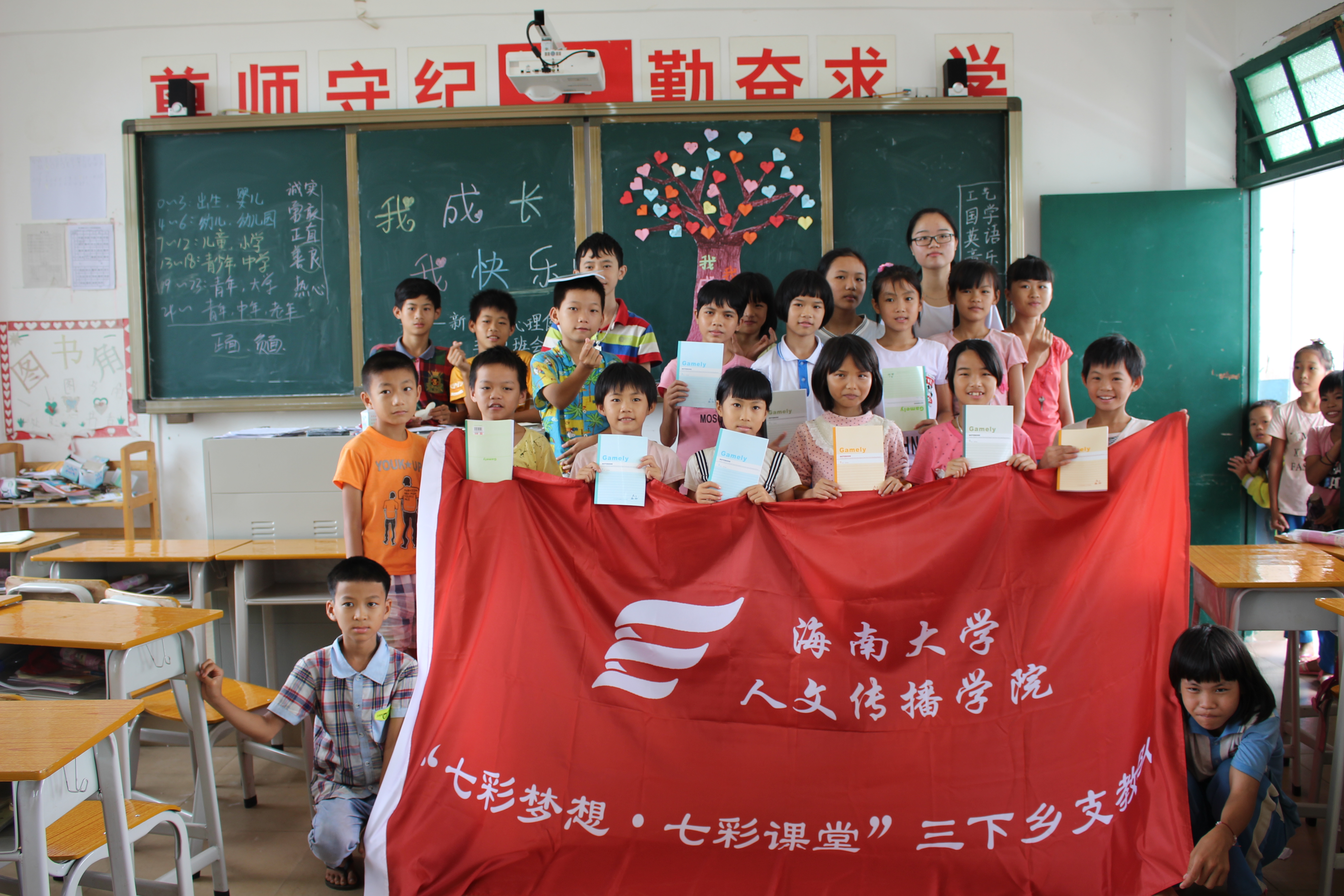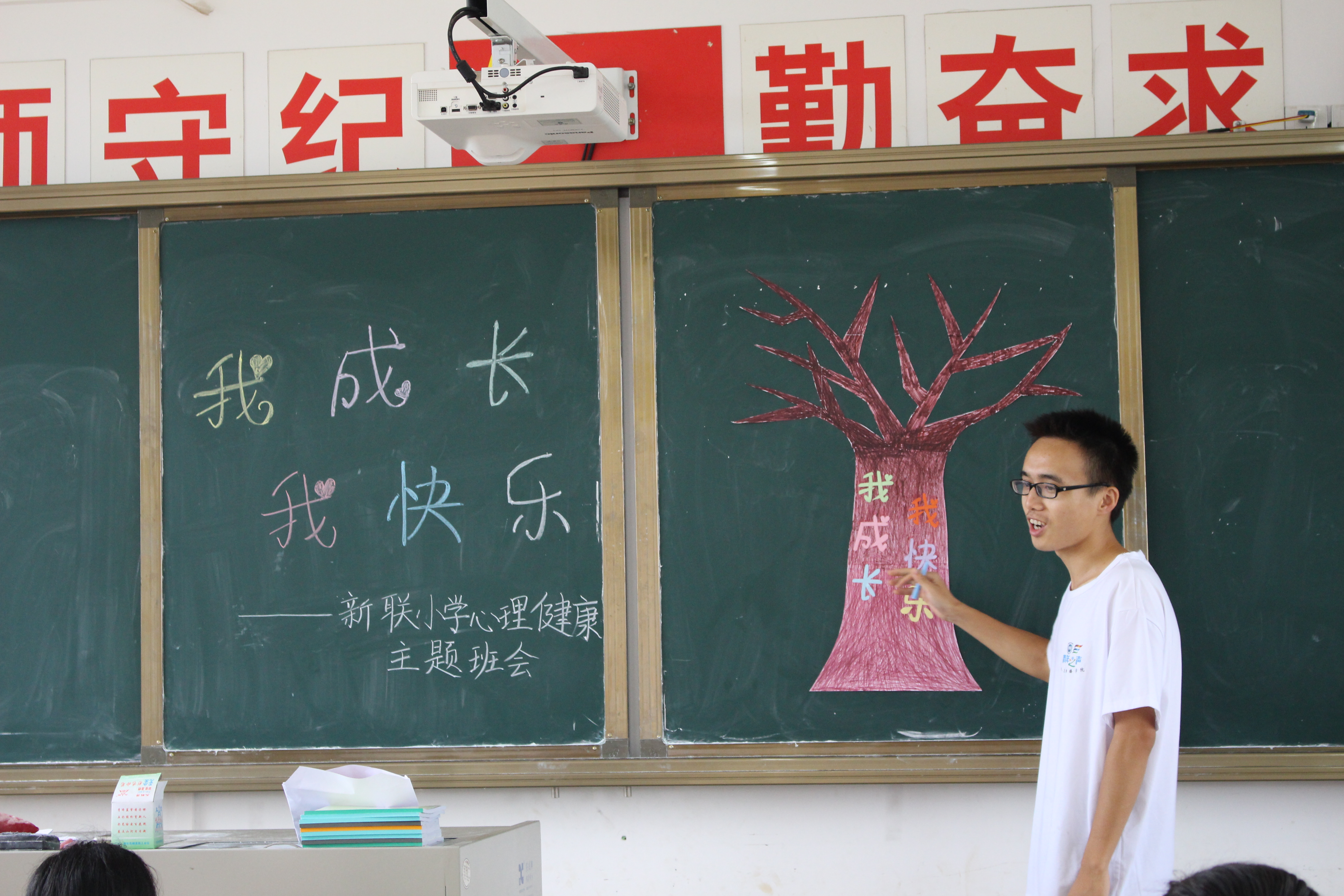 为帮助新联小学孩子们身心健康发展,支教团队在支教过程中十分注重为孩子们宣传普及心理健康知识、开展心理健康教育。7月17日,人文传播学院“七彩梦想·七彩课堂”支教队12位志愿者,为孩子们开展了一次“我成长,我快乐”心理健康主题班会。课堂上充满着温馨、快乐与融洽。