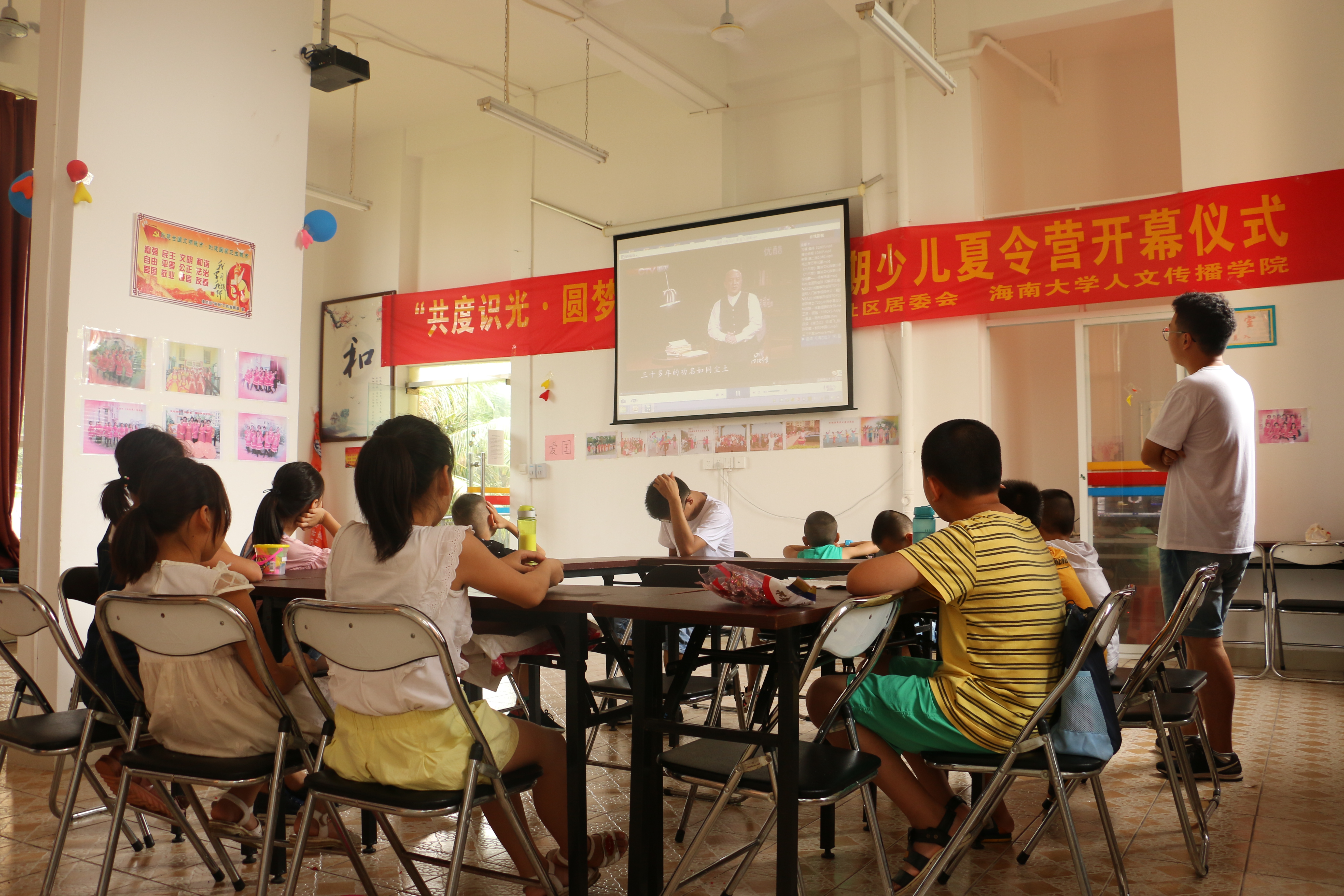 “共度识光·圆梦万福”人文传播学院暑期少儿夏令营活动至此已开展近半。在过去的几天时间里,志愿者们本着耐心与责任,悉心教导,用心陪伴,与万福社区的孩子共同完成了“包容”、“责任”、“坚强”、“爱国”等主题内容的学习。孩子们在进行书法、象棋、朗诵学习的同时,也完成了制作手工棒棒糖、乌篷船,学习跆拳道等活动。在这个过程中,整个实践团队表现出强大的凝聚力的向心力,按照实际情况对实践过程中出现的问题进行调整,彰显了青春活力与激情。
