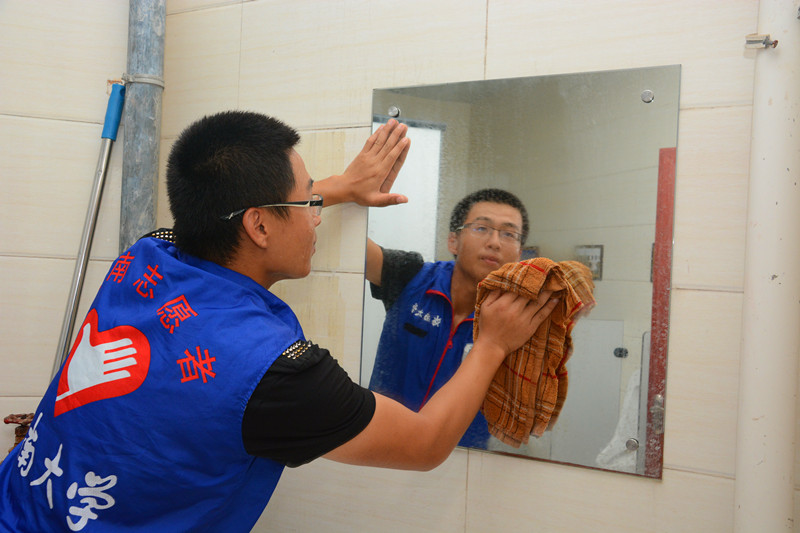 志愿者清理教学楼卫生间卫生