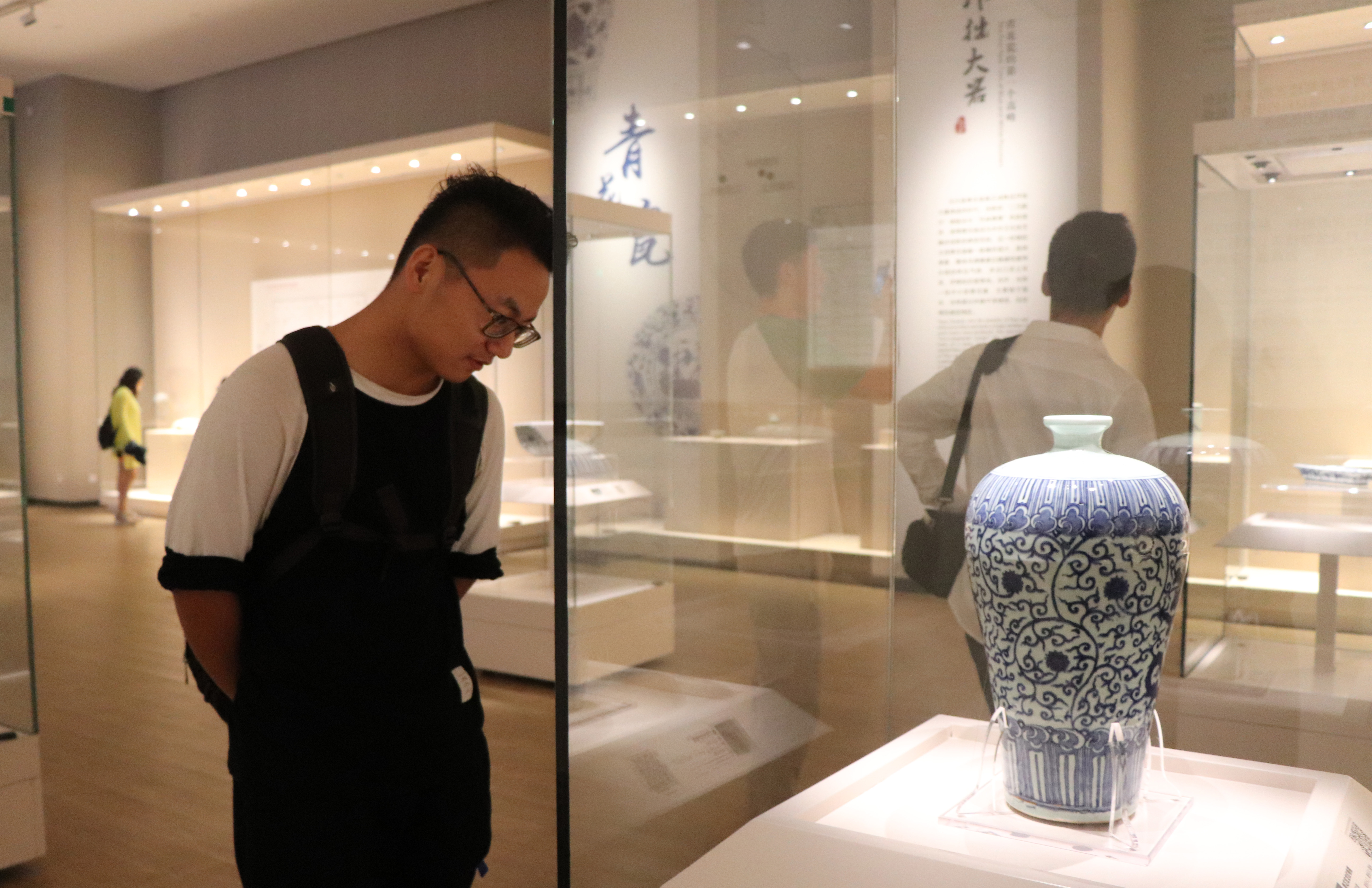 随着“丝绸之路经济带”和“21世纪海上丝绸之路”的复兴而新开设的青花瓷展厅倍受同学们的喜爱和热捧。婀娜多姿的精致美器,瓶身醉人心神的清雅纹饰都映照出中华民族的古老智慧。海南,作为海上丝绸之路的必经之地,更是连接中外文化经济的重要枢纽和桥梁,而该主题展厅展现的青花瓷传世之路,也是看点满满,令人惊叹。