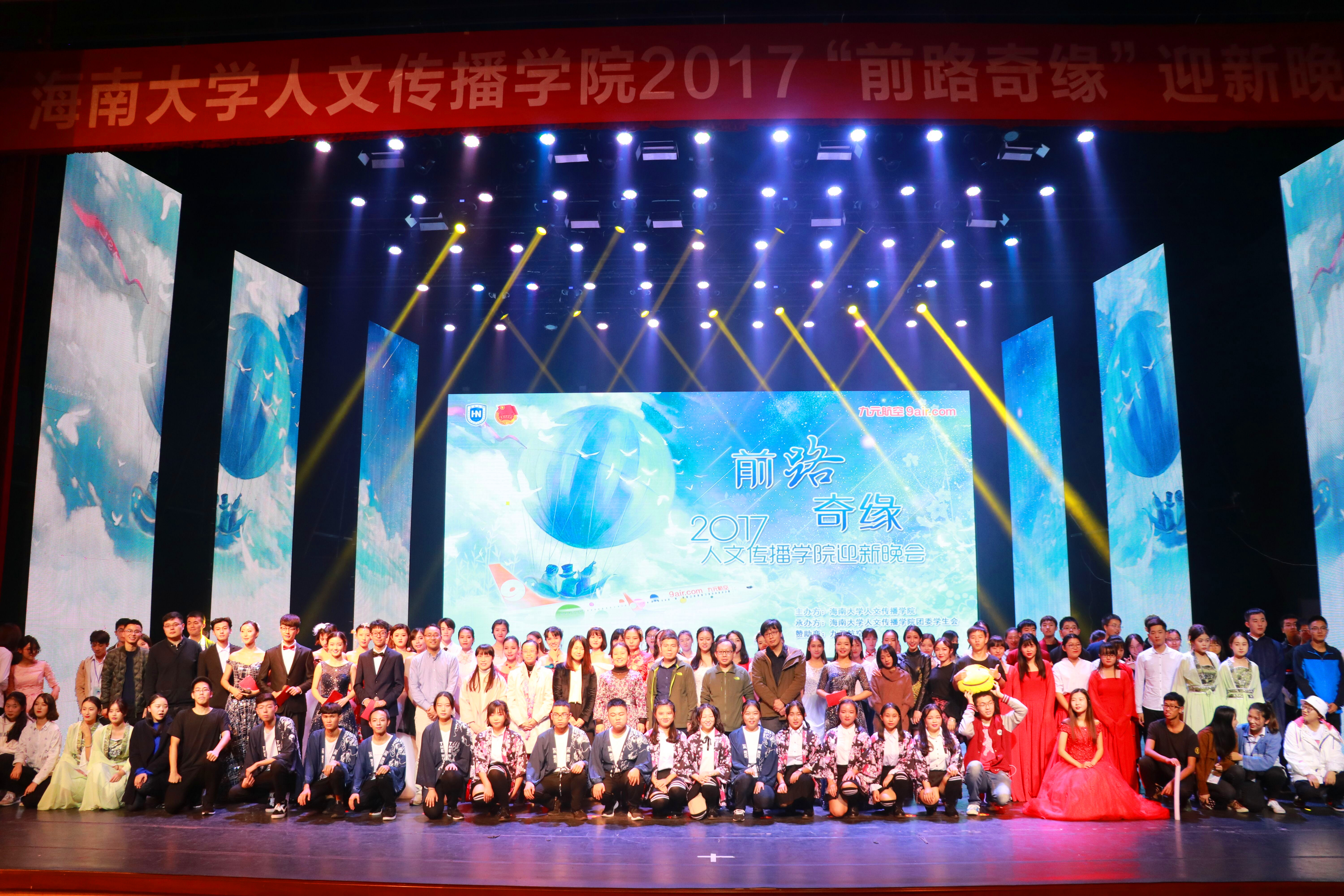 2017年11月25日晚上19:30,人文传播学院 “前路奇缘”主题迎新文艺晚会在思源学堂盛装上演。人文传播学院院长刘复生、党委副书记孙晓媛、副院长石晓岩、九元航空公关部经理黄雁,以及学院部分专业教师、新生班主任、全体辅导员莅临晚会现场。整场晚会精彩不断,高潮迭起,为现场观众带来了一场视听盛宴。