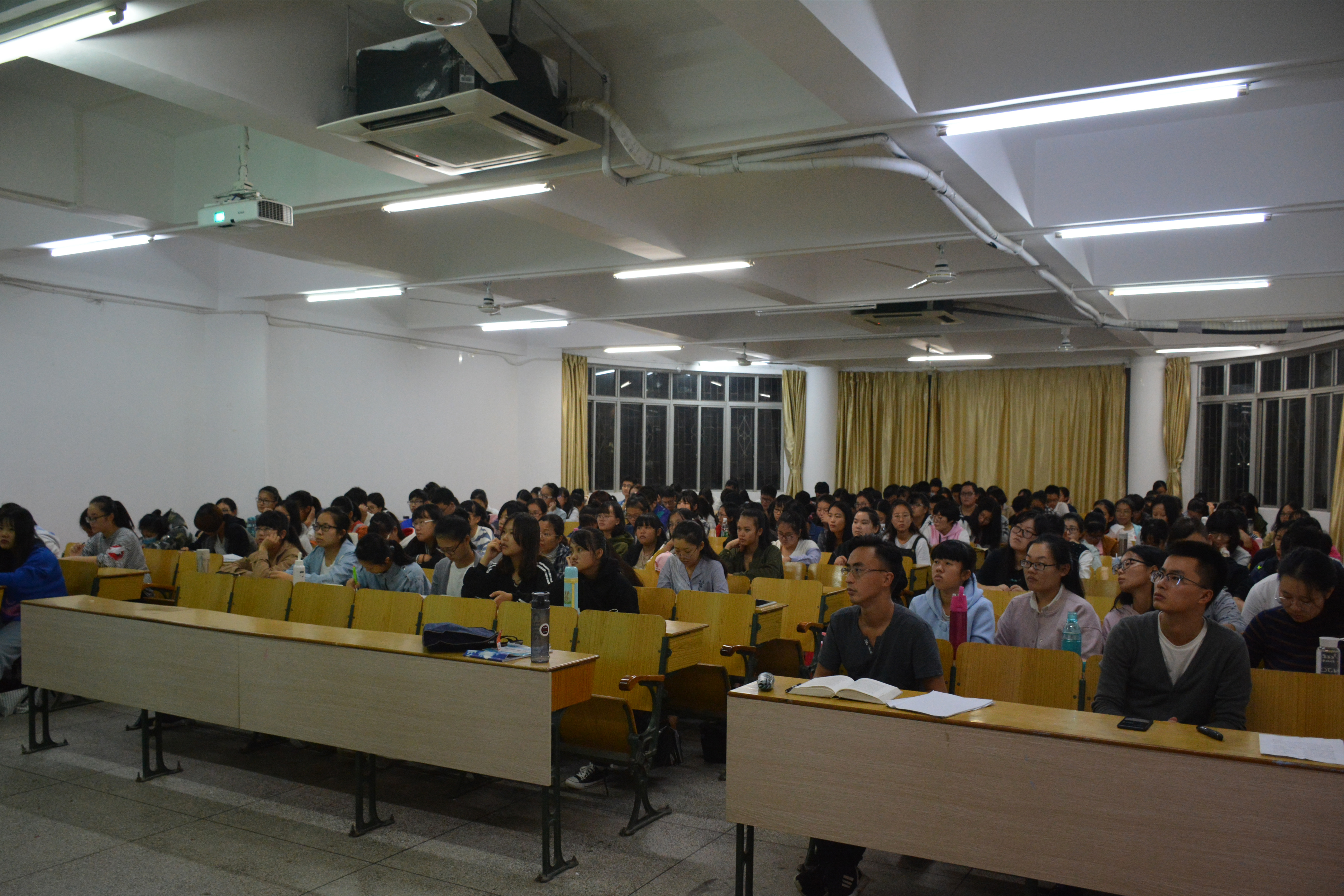 特邀党建组织员林廷玖老师,学院辅导员李润东、王嘉南老师到场参加活动,2017级中文专业全部同学参加了本次讲座。