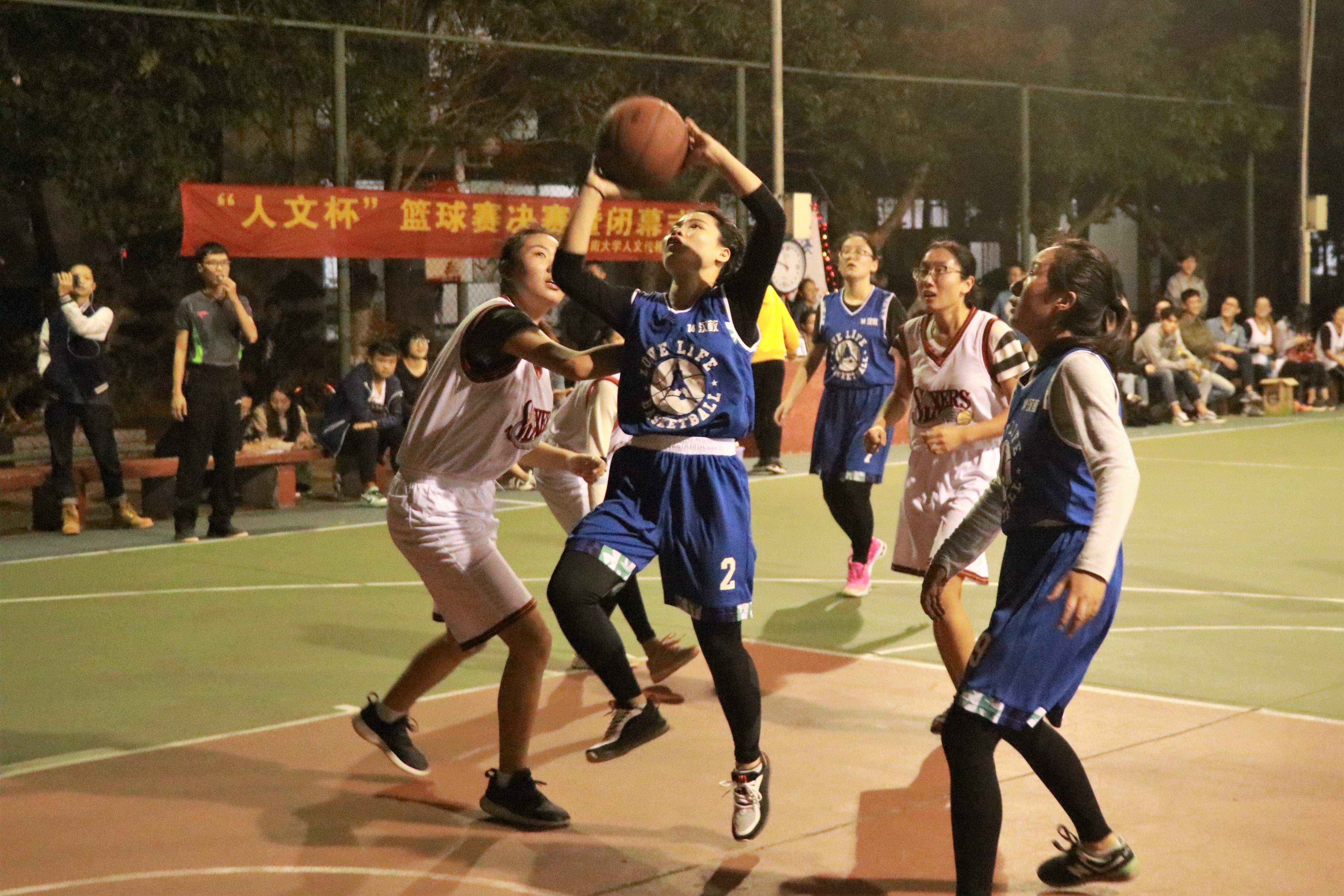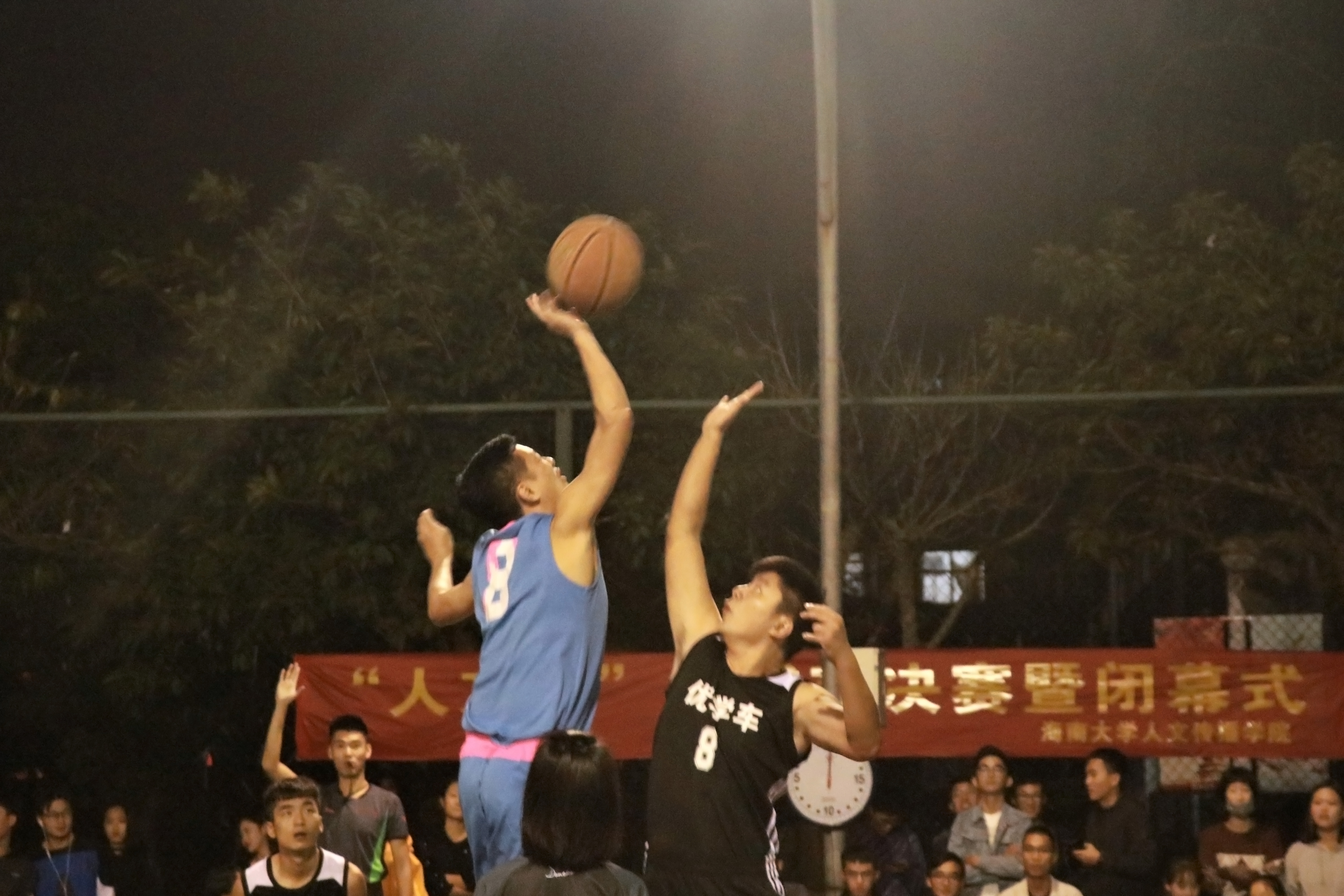 12月10日晚19:30,人文传播学院“人文杯”篮球赛决赛在海甸校区灯光球场1号场激情开场,莅临比赛现场的嘉宾有人文传播学院团委书记熊文军老师,团委学生副书记王安祺、张泽,学生会主席魏有美,学生会副主席马鑫、黄梅梅、王峣,青协会长张之越。此外,各兄弟学院学生会主席及体育部部长也应邀来到比赛现场观赛。