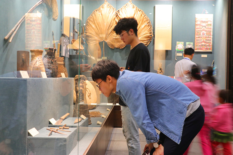 4月19日上午9:00,采风实践队员们首先来到海南省民族博物馆,参观了海南民族历史文化馆和海南建省办经济特区30周年民族地区经济社会发展成就展。海南民族历史文化馆的展览使实践队员了解了从新石器时期起的各个历史阶段,黎苗族人民的政治、经济、文化和风土人情。海南建省办经济特区30周年民族地区经济社会发展成就展则使队员们对海南建省办经济特区30年来,黎苗少数民族地区取得的政治经济文化成就有了深刻的认识。采风第二站,队员们来到“三月三”民族特色商品美食街,各具特色的美食和花样繁多的黎锦刺绣无一不是海南黎苗人民热爱劳动、热爱生活的直接体现。沿着“三月三”民族特色商品美食街,队员们到达下一站五指山市南圣河滨河景观带,少数民族原生态民歌对唱表演正热烈开展。轻松欢快的歌声,唱出了少数民族兄弟姐妹对美好爱情的向往和幸福美好生活的感恩。