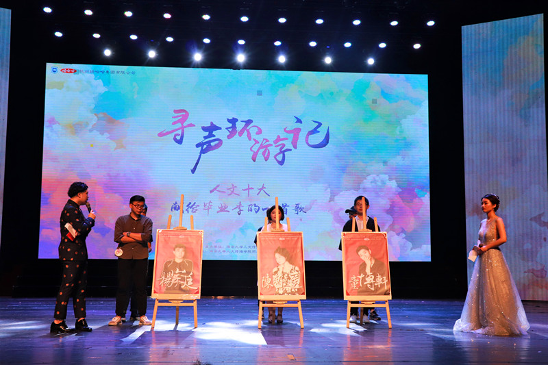 获2015年校十大冠军队伍助阵本次晚会,再次演绎夺冠曲目《we arethe champion》,展现了他们不凡的歌唱实力,他们用歌声为现场的观众送上了真切的祝福和期待。活动最后,由文工团和大四部分学生一同表演的走秀节目《天使重现》引爆全场,在对毕业生微访谈的视频播放中,2018“寻声环游记·献给毕业的一首歌”十大歌手决赛暨毕业季音乐会圆满落下帷幕。